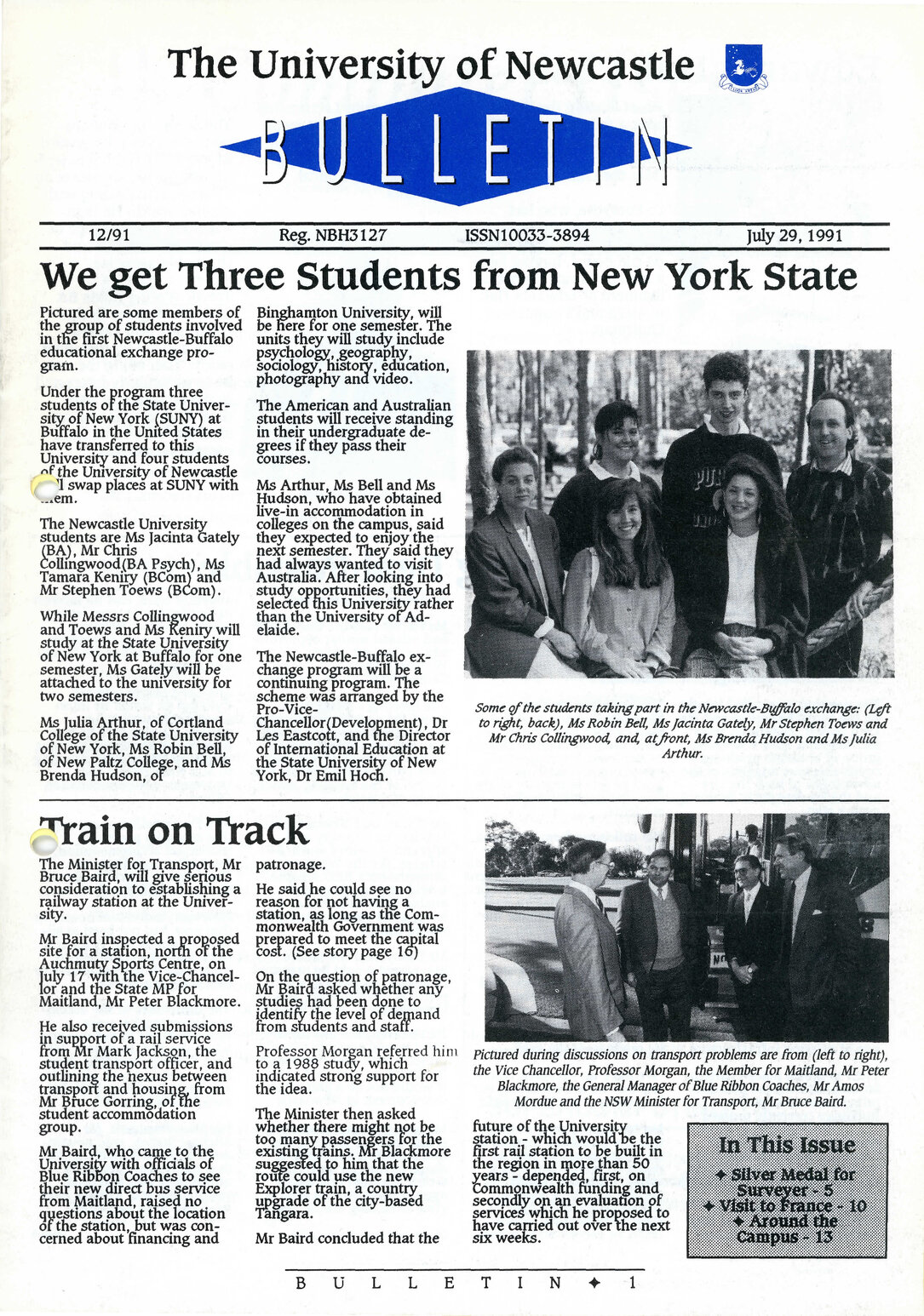 The University of Newcastle Bulletin, No.12, July 29, 1991
