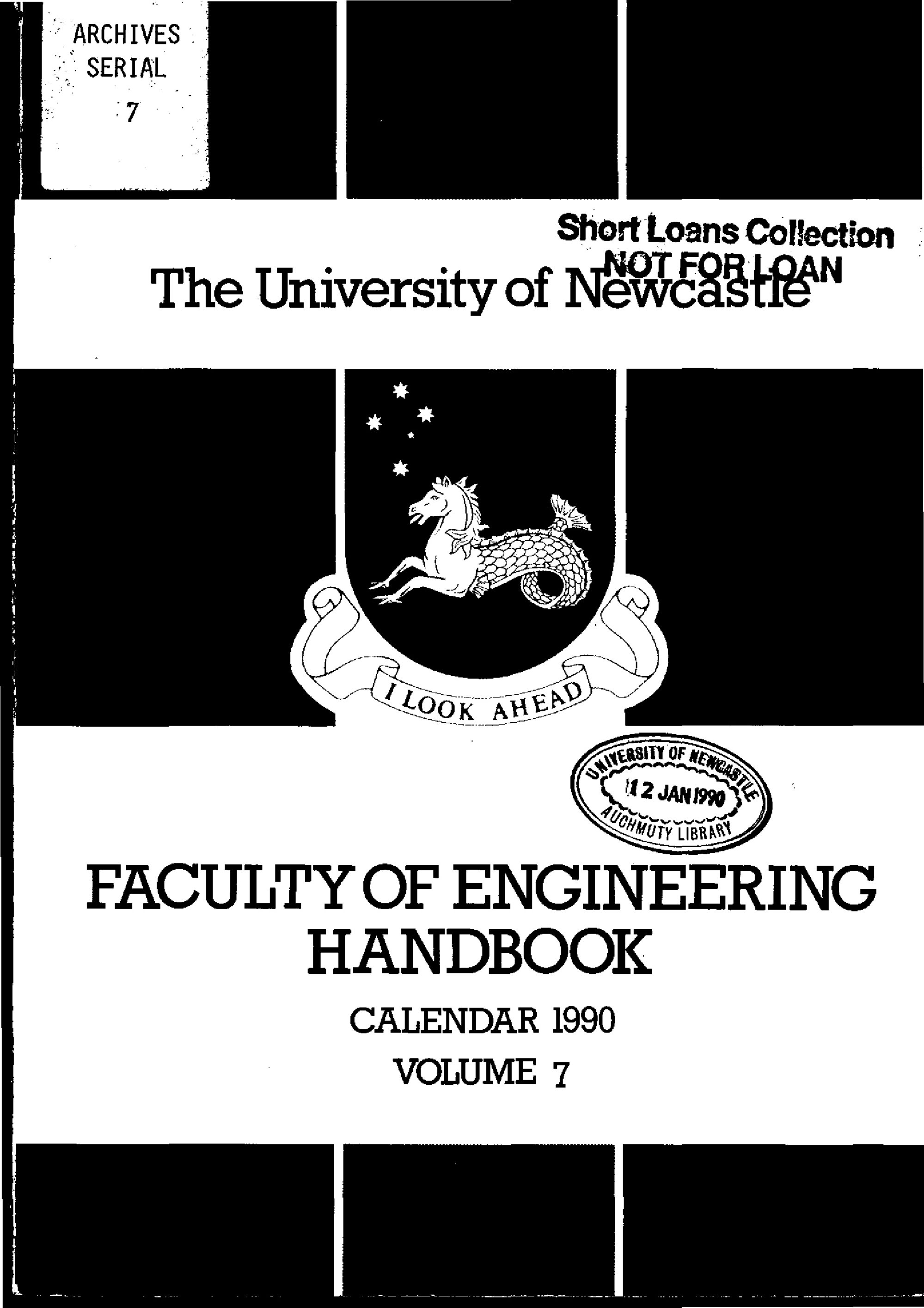 University of Newcastle (N.S.W.). Faculty of Engineering, Faculty of Engineering Handbook, 1990 (1990), [Archives Serial 7]. Living Histories, accessed 09/02/2026, https://livinghistories.newcastle.edu.au/nodes/view/57166