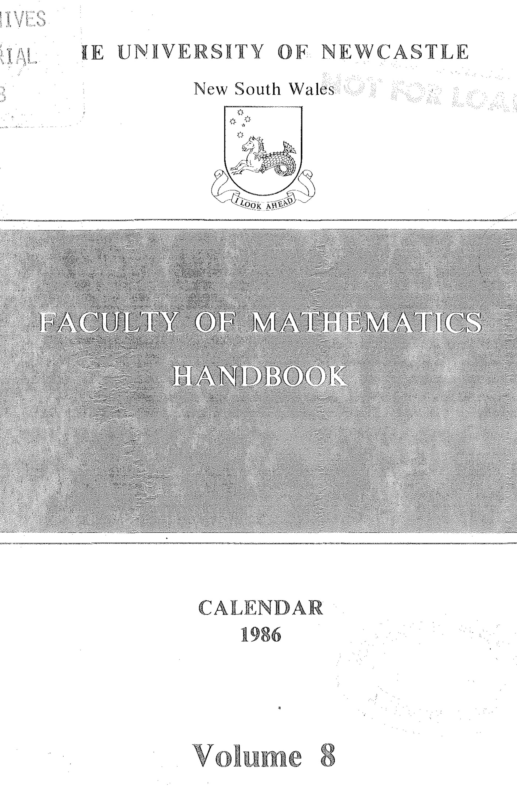 University of Newcastle (N.S.W.). Faculty of Mathematics, Faculty of Mathematics Handbook, 1986 (1986), [Archives Serial 8]. Living Histories, accessed 13/01/2026, https://livinghistories.newcastle.edu.au/nodes/view/57189