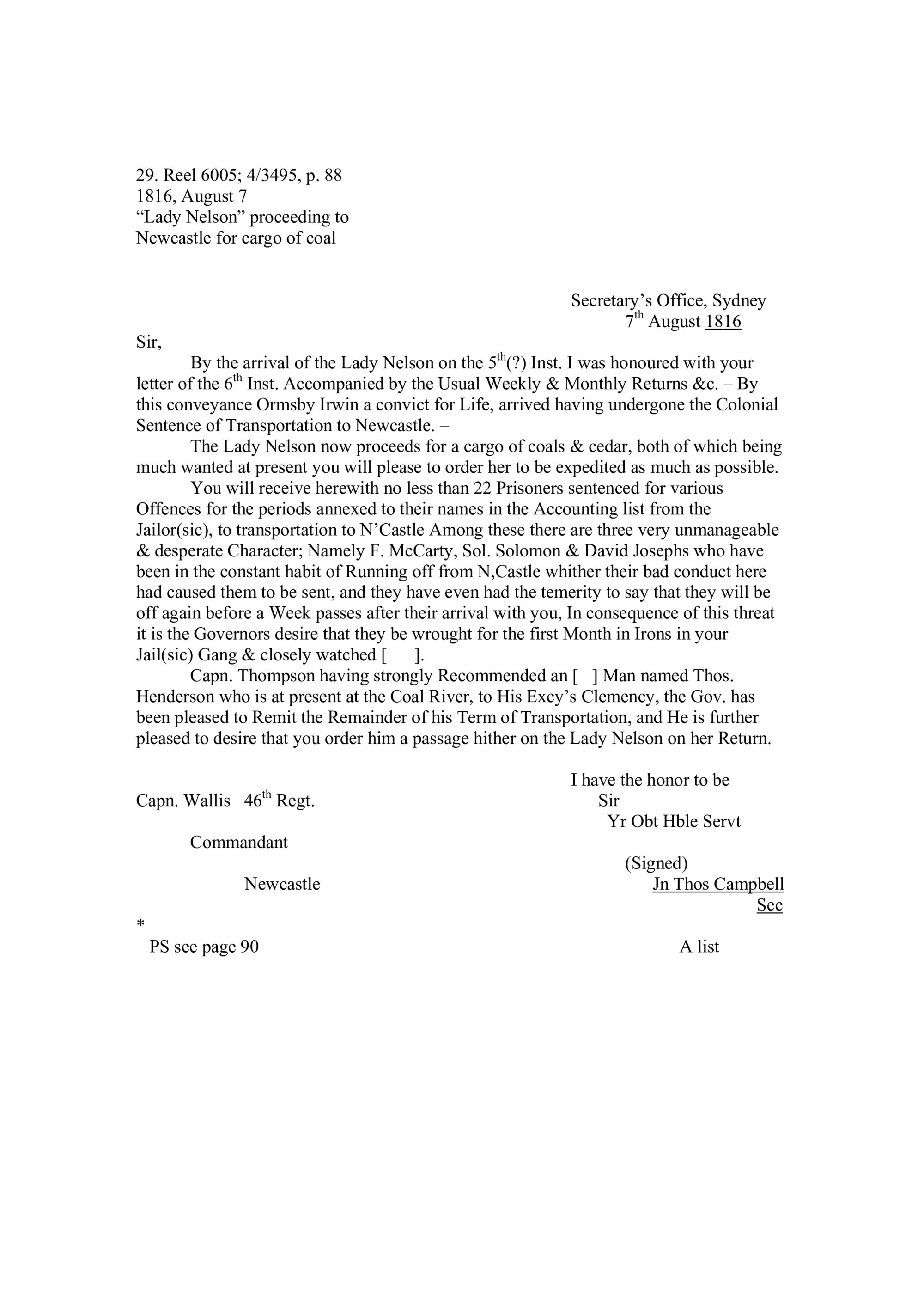 "Lady Nelson" proceeding to Newcastle for cargo of coal. - 1816, August 7. (Reel