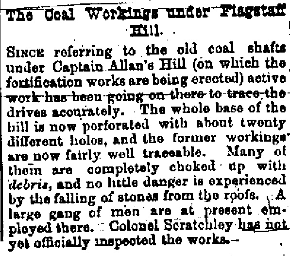 Newcastle Morning Herald and Miners' Advocate, The coal workings under Flagstaff Hill - 20 May 1881. Living Histories, accessed 20/03/2026, https://livinghistories.newcastle.edu.au/nodes/view/57368