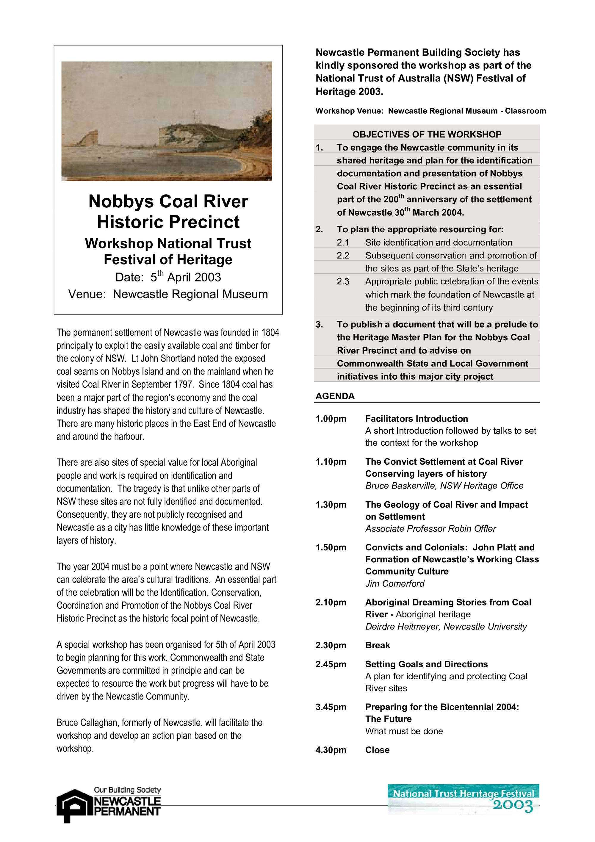 Nobbys Coal River Historic Precinct: workshop National Trust Festival of Heritage, 2003