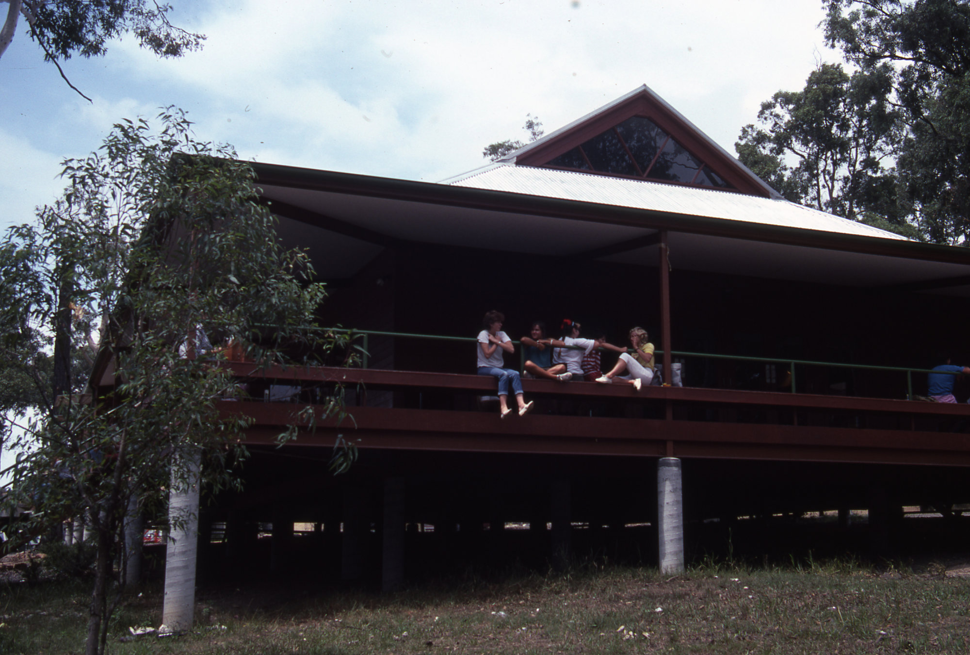 Medical Communication Unit, University of Newcastle, Australia, Students around verandah of NCAE Union Building (now The Bar-On-The-Hill) - Newcastle University, NSW, [MCU-StudentUnion005]. Living Histories, accessed 15/04/2026, https://livinghistories.newcastle.edu.au/nodes/view/5756