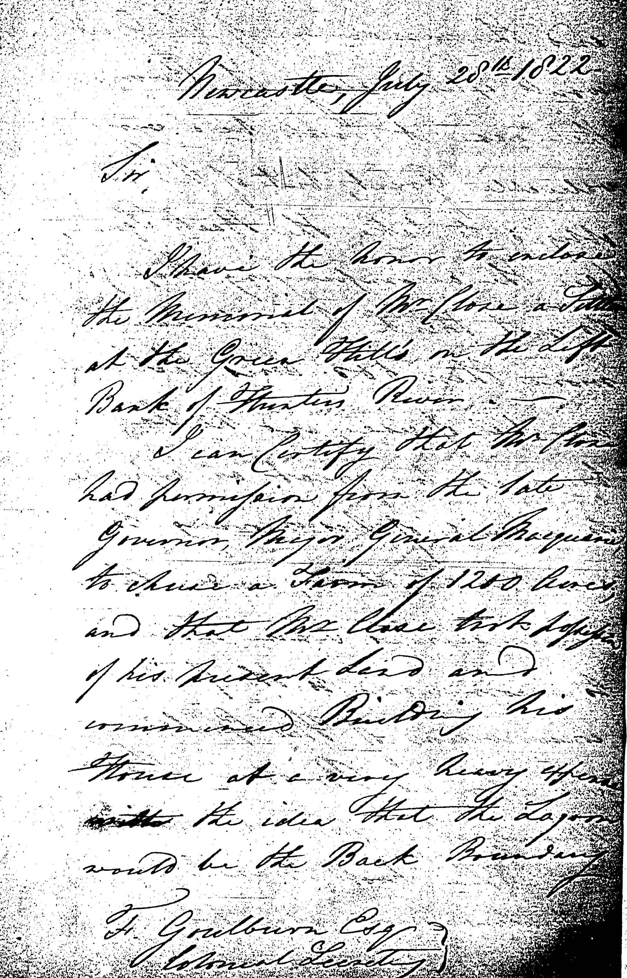 Morisset to Goulburn. 28th July 1822 Colonial Secretary: Letters Received, 1822.