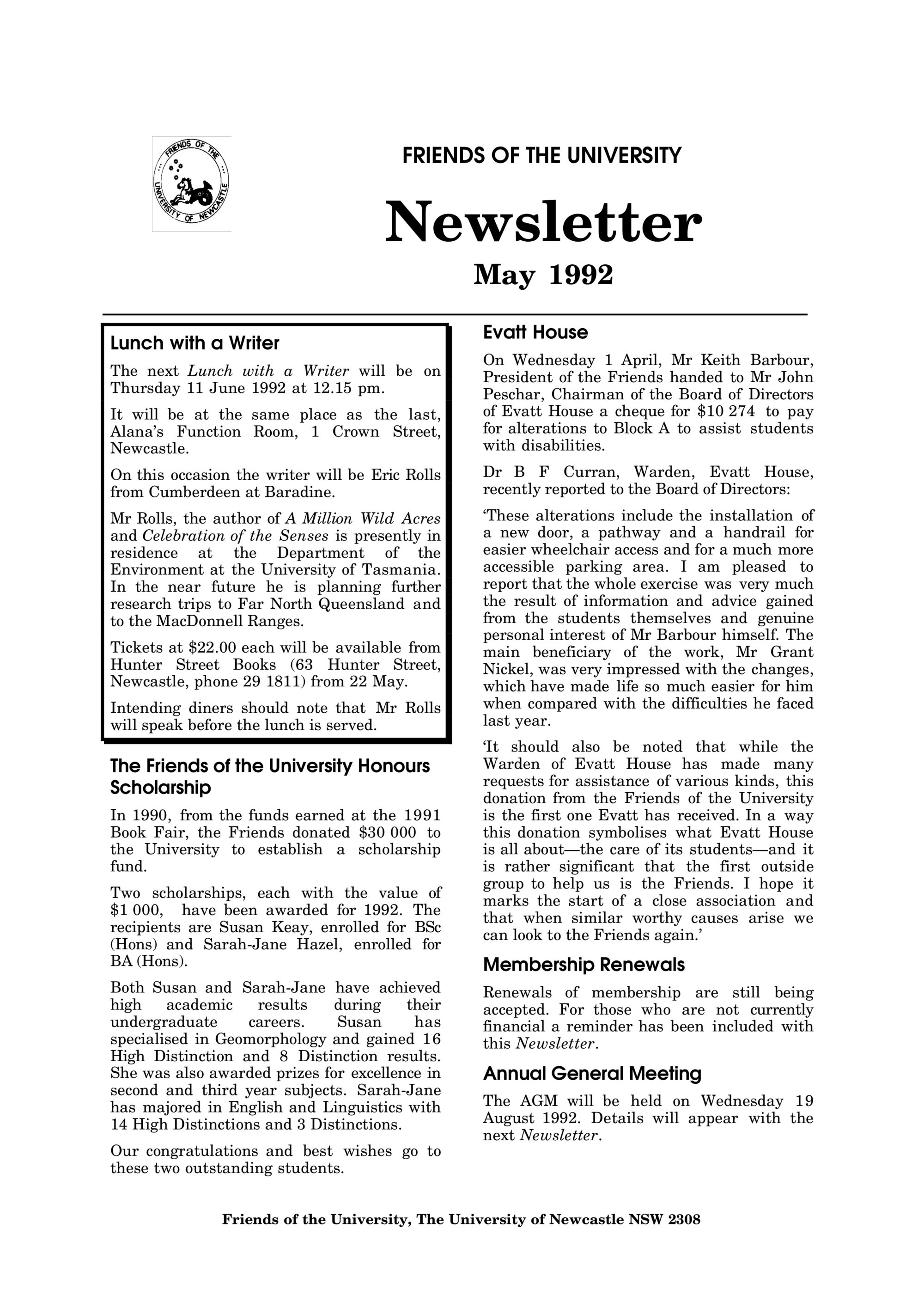 Lambert, John A. , Friends of the University of Newcastle News, May 1992 (1992-05), [news199205]. Living Histories, accessed 14/04/2026, https://livinghistories.newcastle.edu.au/nodes/view/57670