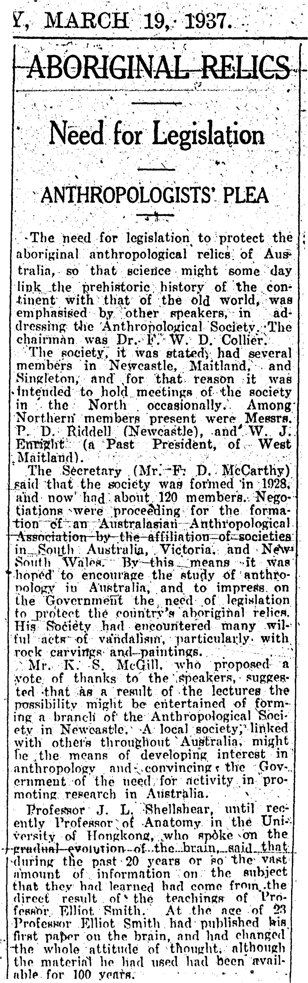 Aboriginal Relics. Need for Legislation. Anthropologists' Plea, [nmhmar1937]. Living Histories, accessed 02/04/2026, https://livinghistories.newcastle.edu.au/nodes/view/57722