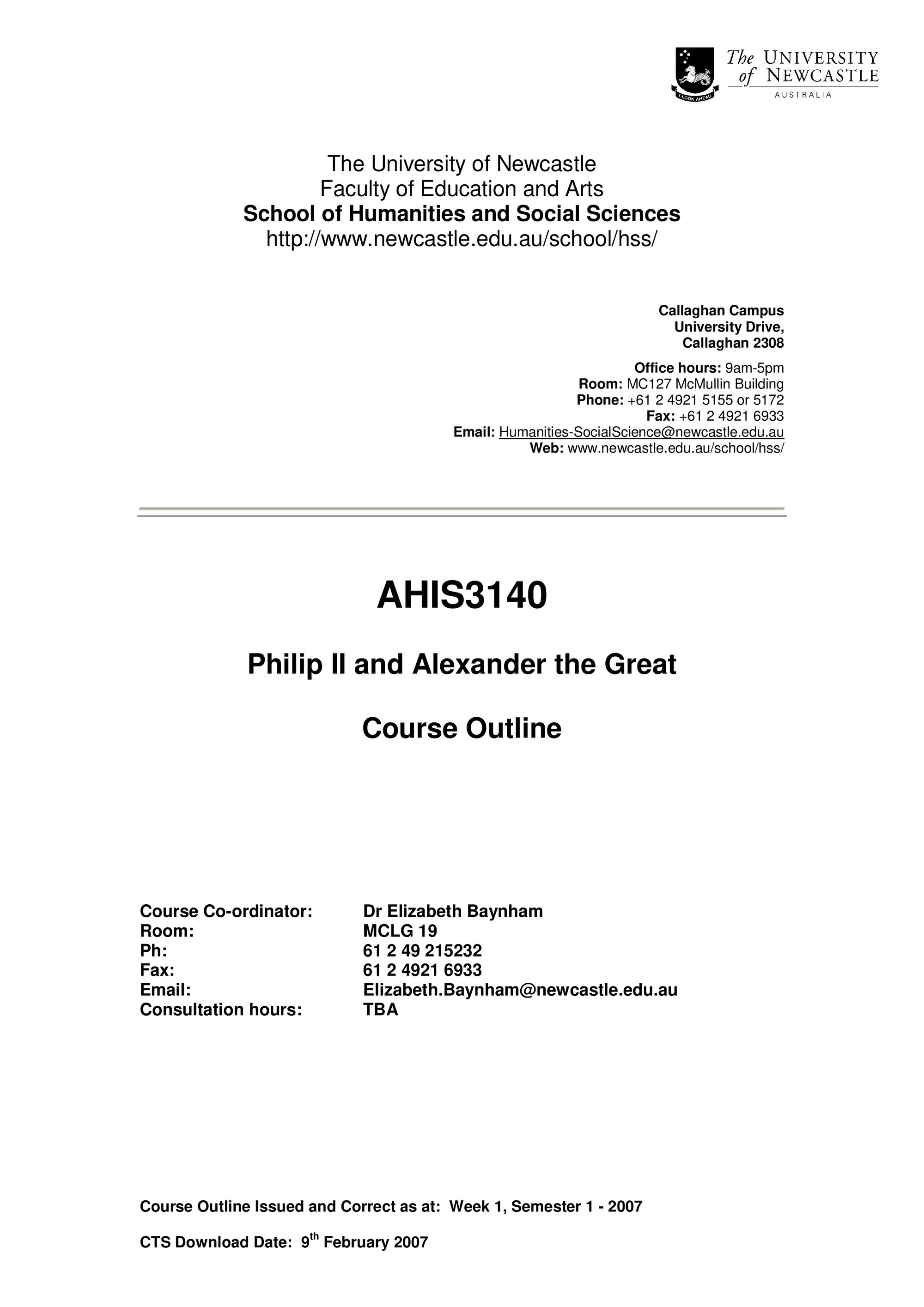 School of Humanities and Social Science, AHIS3140 Course Outline, Semester 1, 2007 (2007). Living Histories, accessed 13/03/2026, https://livinghistories.newcastle.edu.au/nodes/view/57953