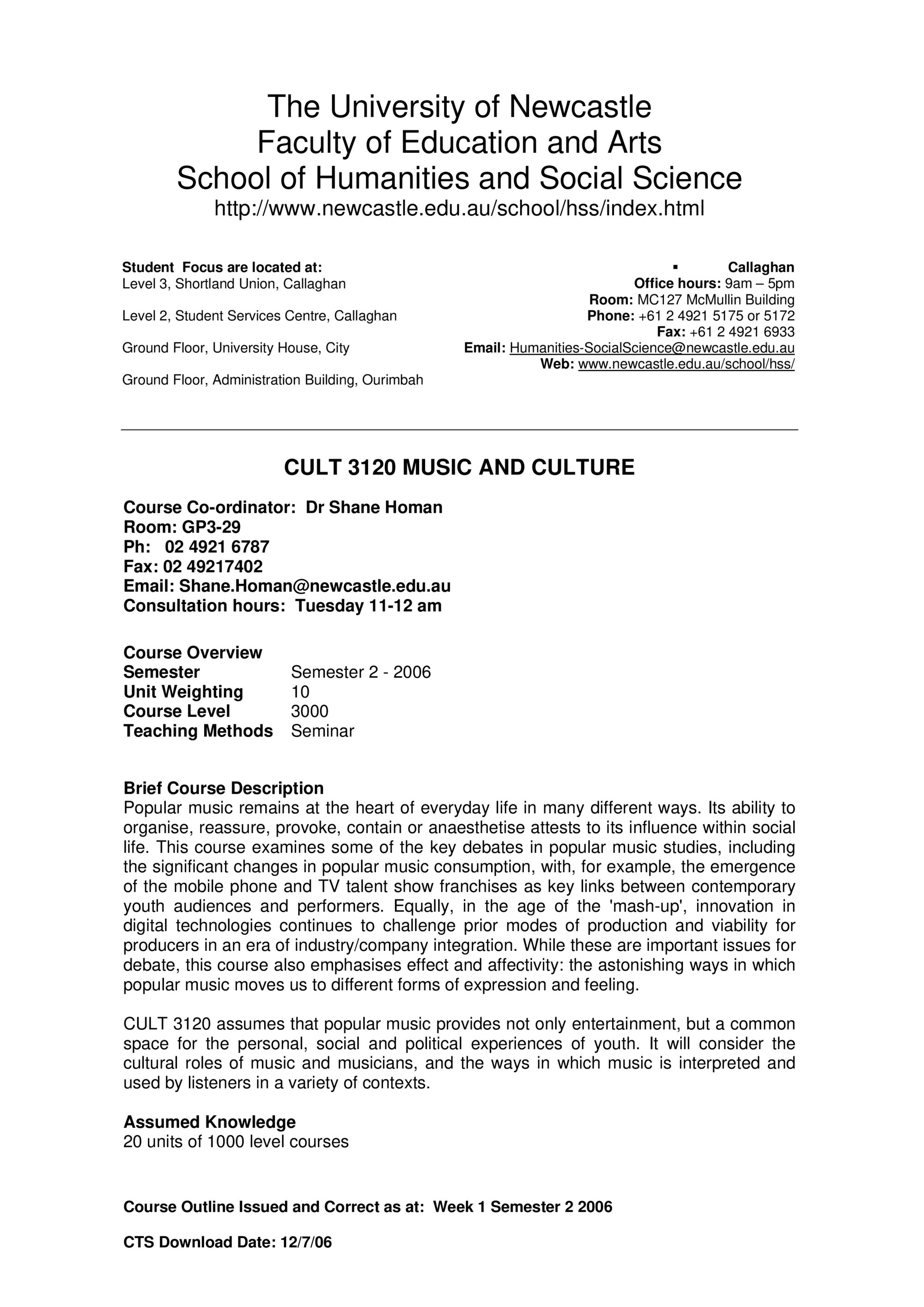 School of Humanities and Social Science, CULT3120 Course Outline, Semester 2, 2006 (2006). Living Histories, accessed 15/04/2026, https://livinghistories.newcastle.edu.au/nodes/view/58052