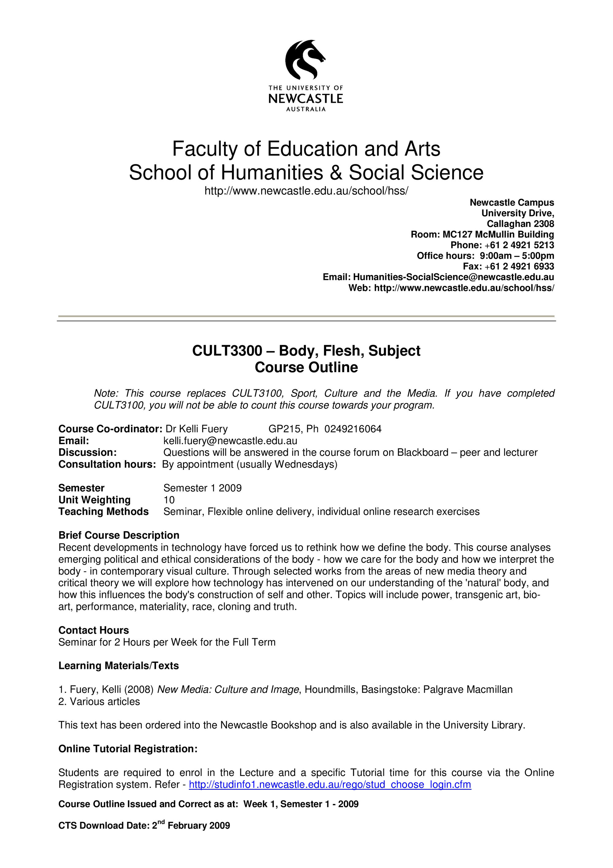 School of Humanities and Social Science, CULT3300 Course Outline, Semester 1, 2009 (2009). Living Histories, accessed 06/03/2026, https://livinghistories.newcastle.edu.au/nodes/view/58061