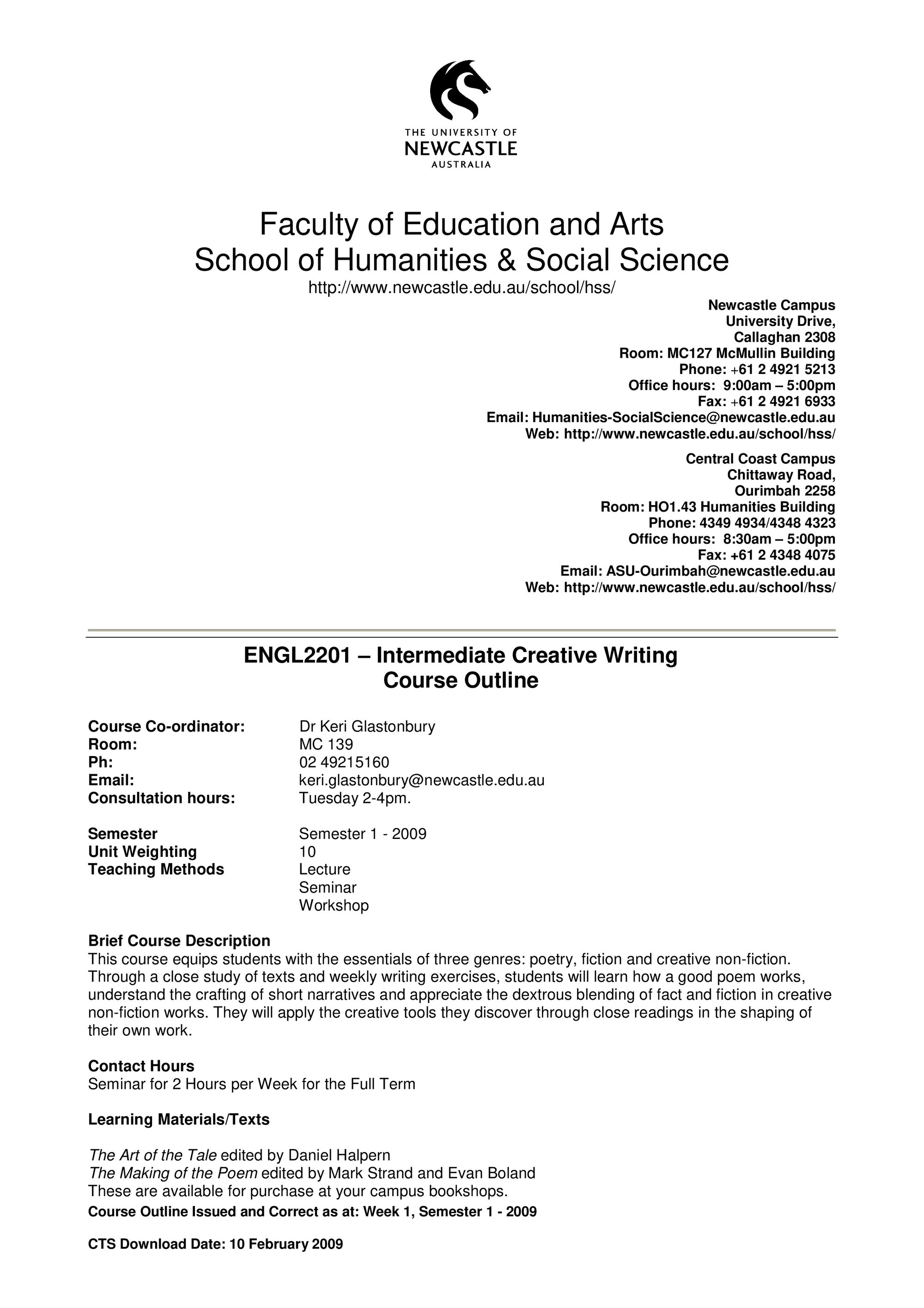 School of Humanities and Social Science, ENGL2201 Course Outline, Semester 1, 2009 (2009). Living Histories, accessed 15/04/2026, https://livinghistories.newcastle.edu.au/nodes/view/58096