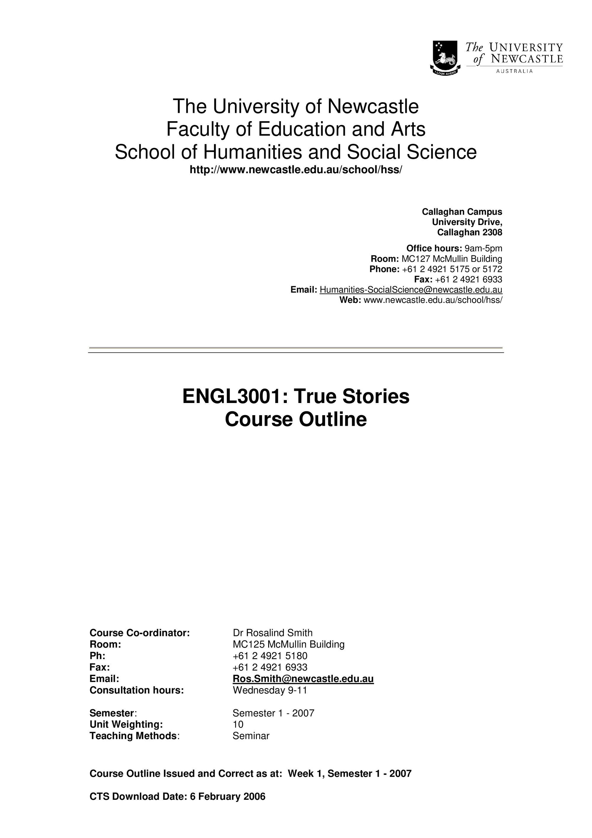 School of Humanities and Social Science, ENGL3001 Course Outline, Semester 1, 2007 (2007). Living Histories, accessed 17/04/2026, https://livinghistories.newcastle.edu.au/nodes/view/58101