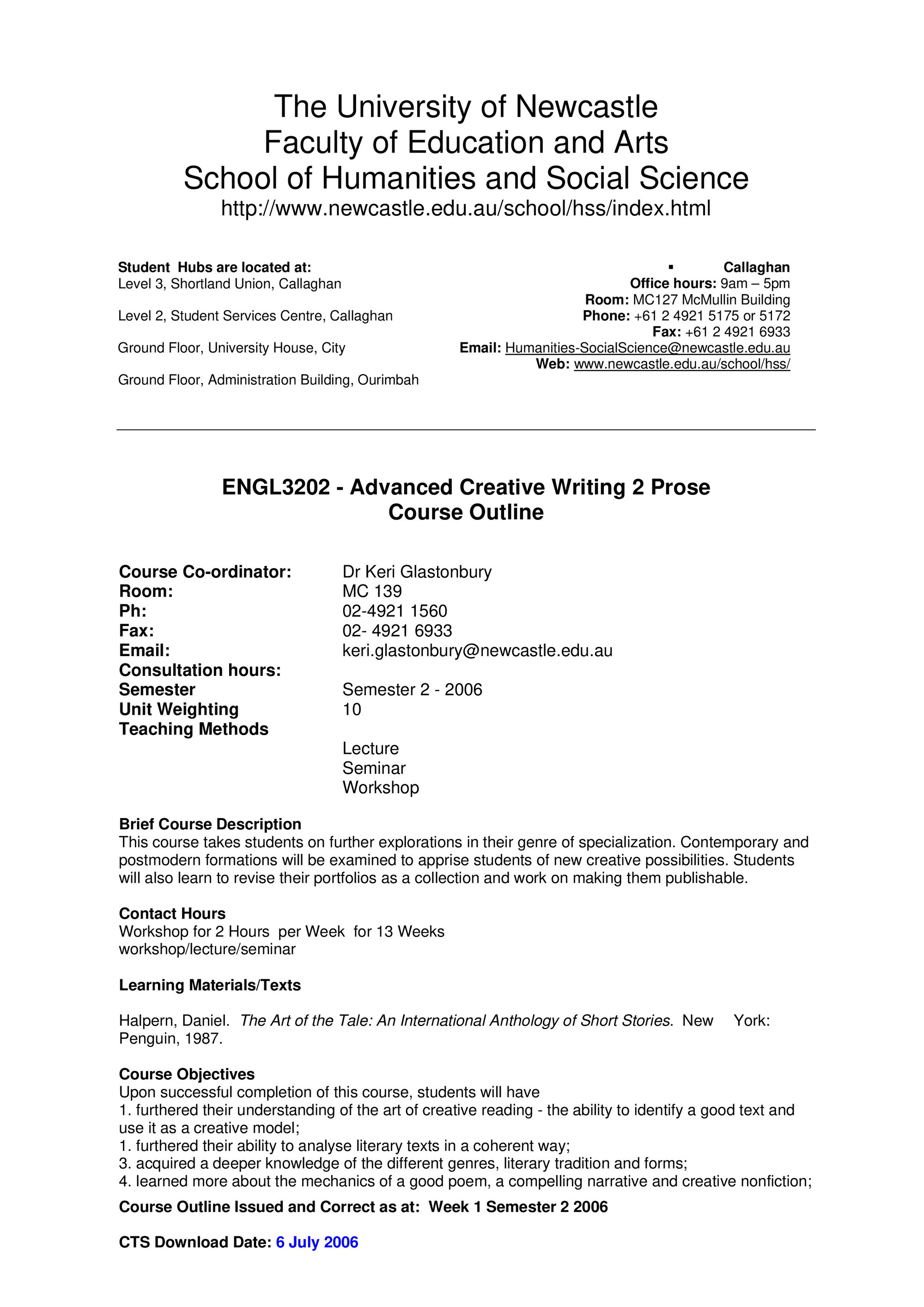 School of Humanities and Social Science, ENGL3202 Prose Course Outline, Semester 2, 2006 (2006). Living Histories, accessed 15/04/2026, https://livinghistories.newcastle.edu.au/nodes/view/58143