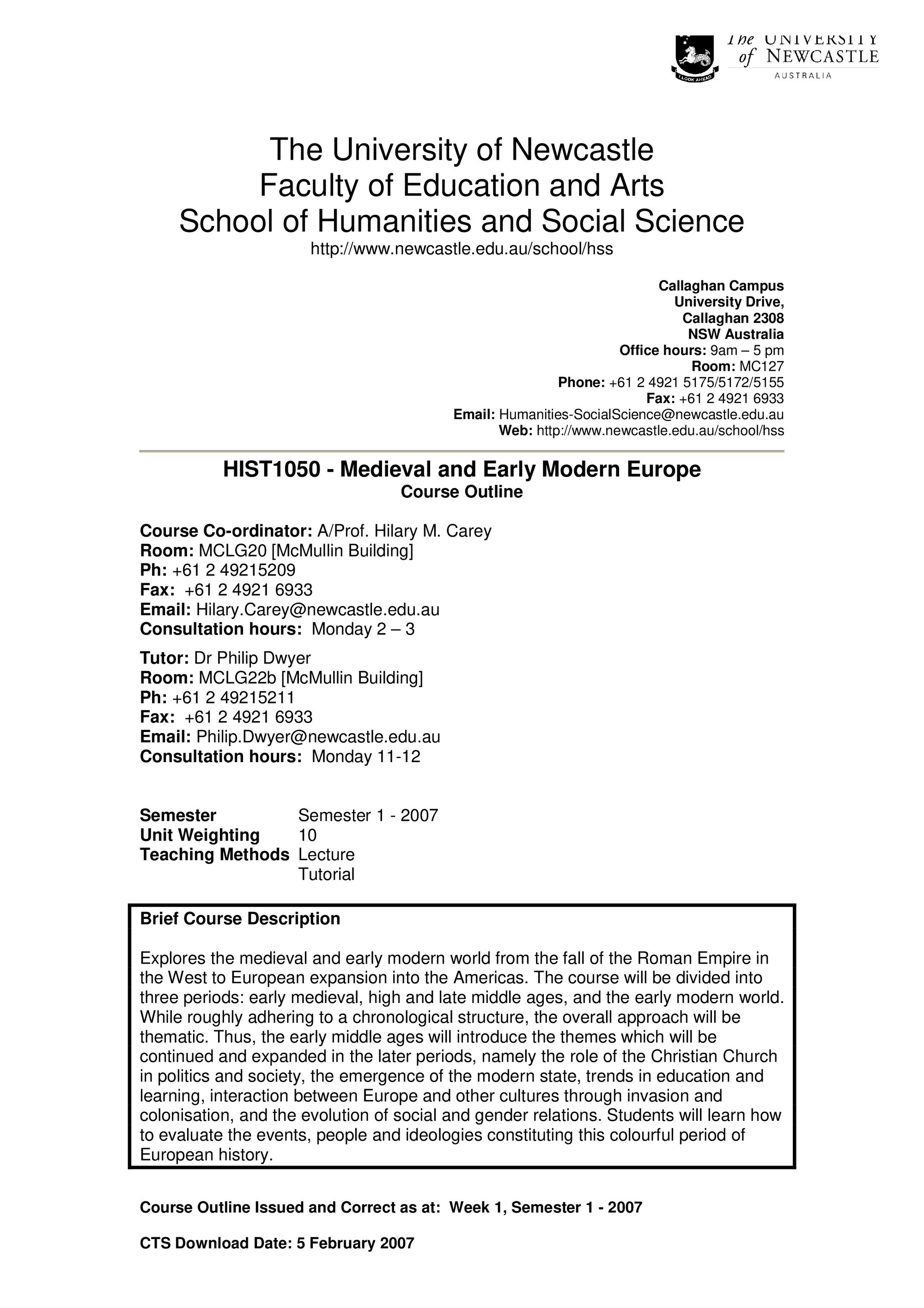 School of Humanities and Social Science, HIST1050 Course Outline, Semester 1, 2007 (2007). Living Histories, accessed 19/03/2026, https://livinghistories.newcastle.edu.au/nodes/view/58277