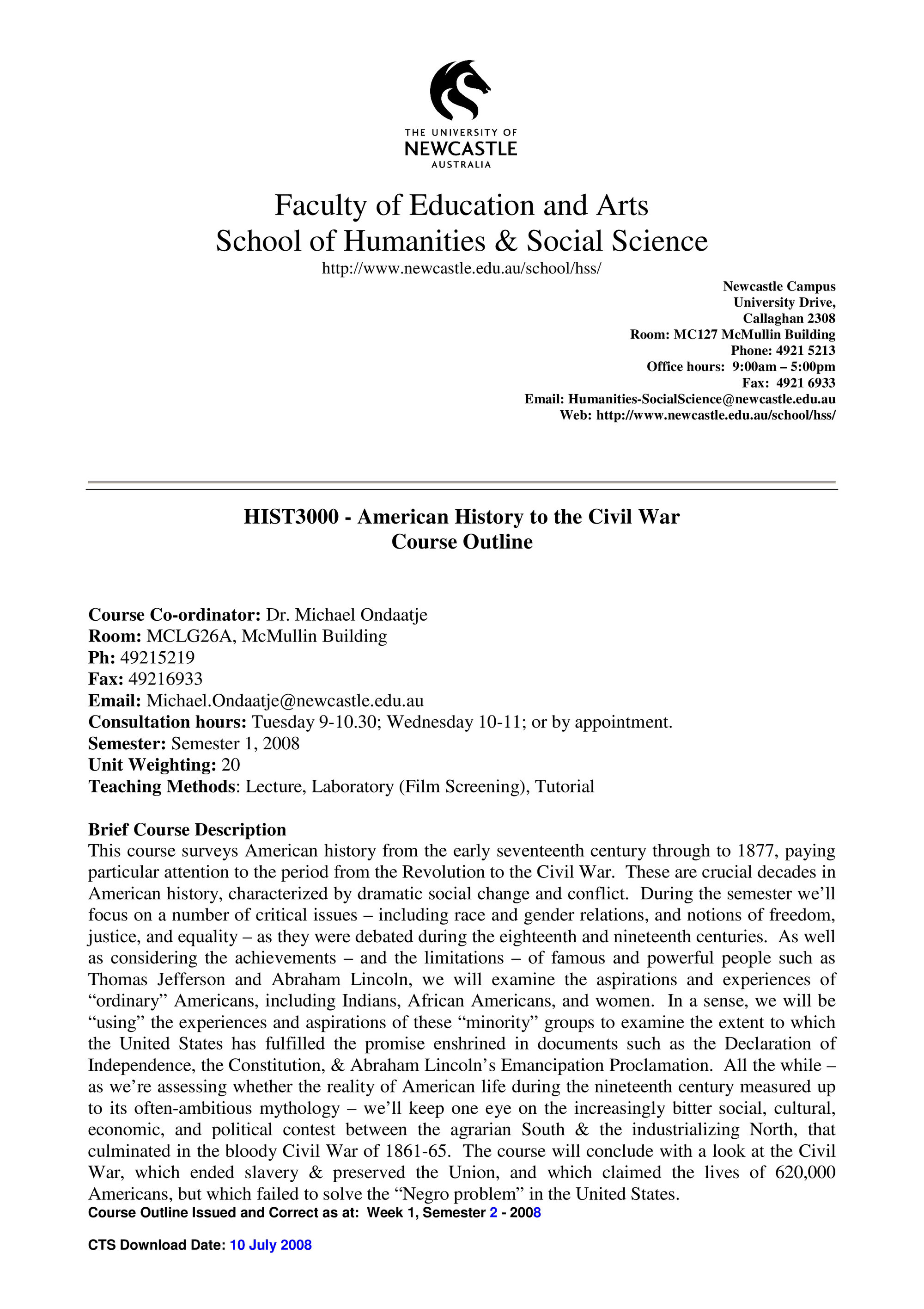 School of Humanities and Social Science, HIST3000 Course Outline, Semester 2, 2008 (2008). Living Histories, accessed 12/03/2026, https://livinghistories.newcastle.edu.au/nodes/view/58294