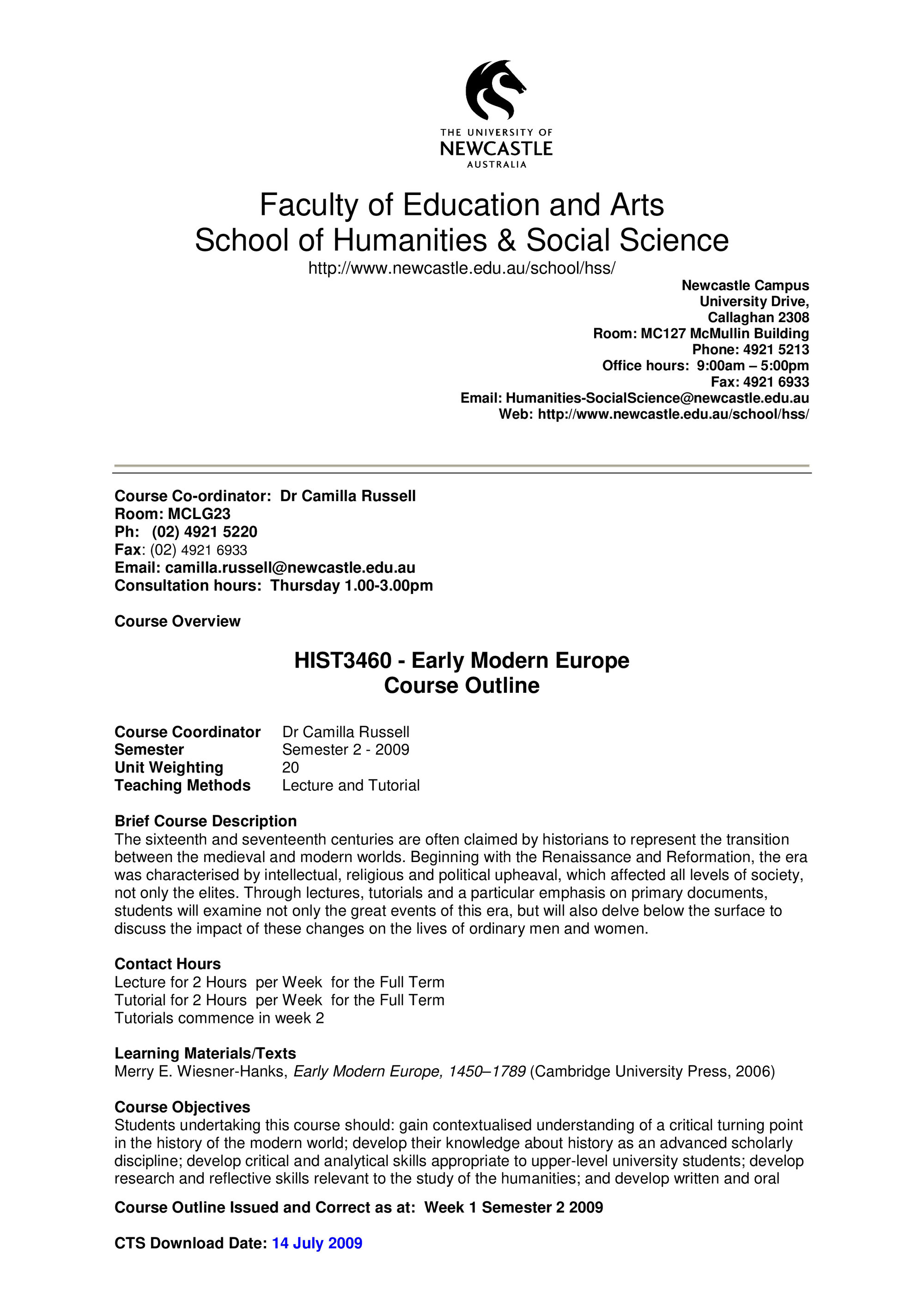 School of Humanities and Social Science, HIST3460 Course Outline, Semester 2, 2009 (2009). Living Histories, accessed 15/03/2026, https://livinghistories.newcastle.edu.au/nodes/view/58313