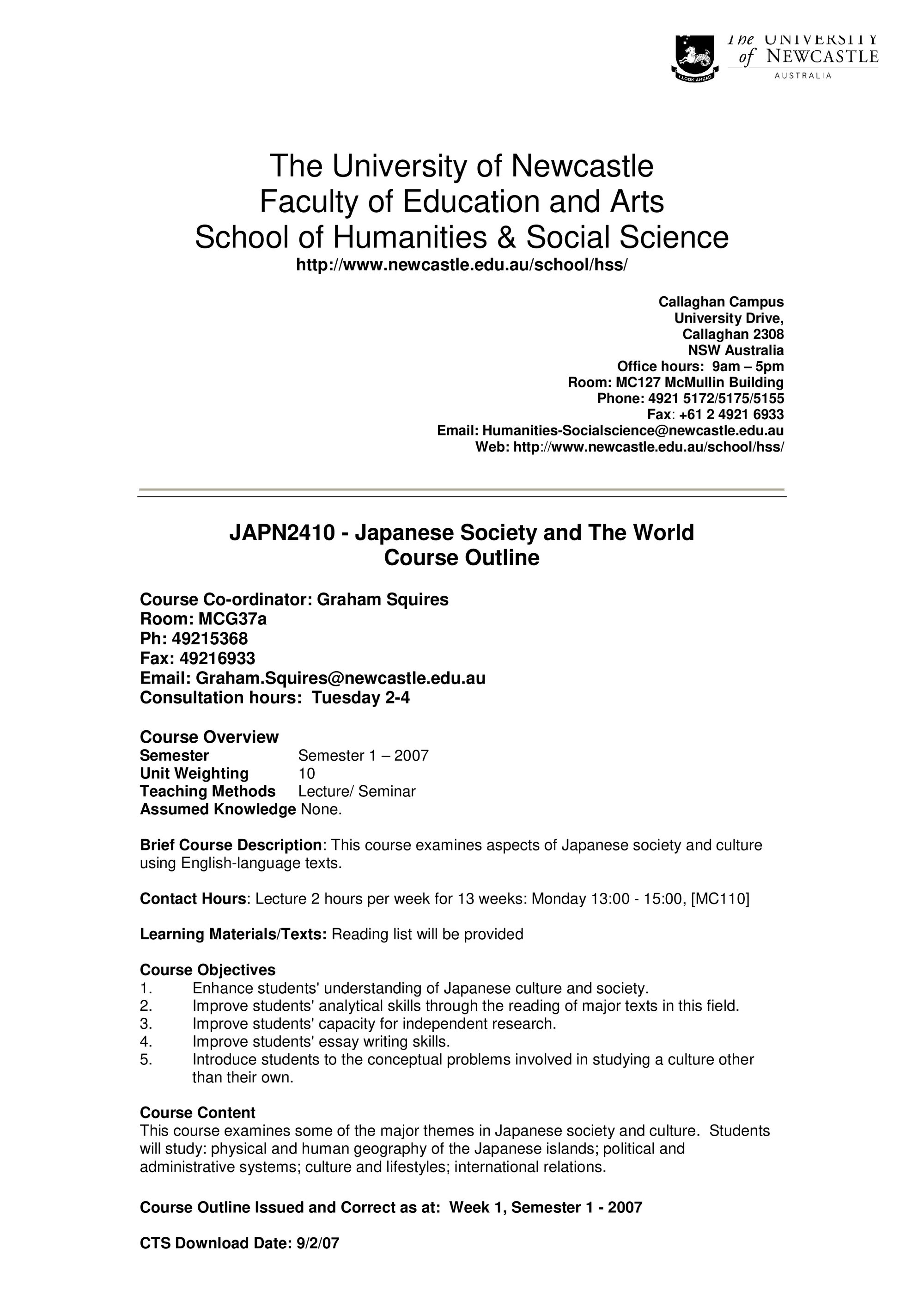 School of Humanities and Social Science, JAPN2410 Course Outline, Semester 1, 2007 (2007). Living Histories, accessed 17/04/2026, https://livinghistories.newcastle.edu.au/nodes/view/58349