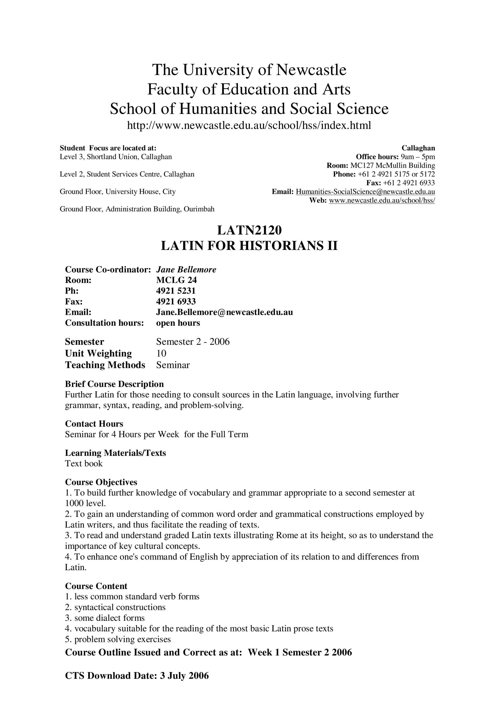 School of Humanities and Social Science, LATN2120 Course Outline, Semester 2, 2006 (2006). Living Histories, accessed 07/02/2026, https://livinghistories.newcastle.edu.au/nodes/view/58385