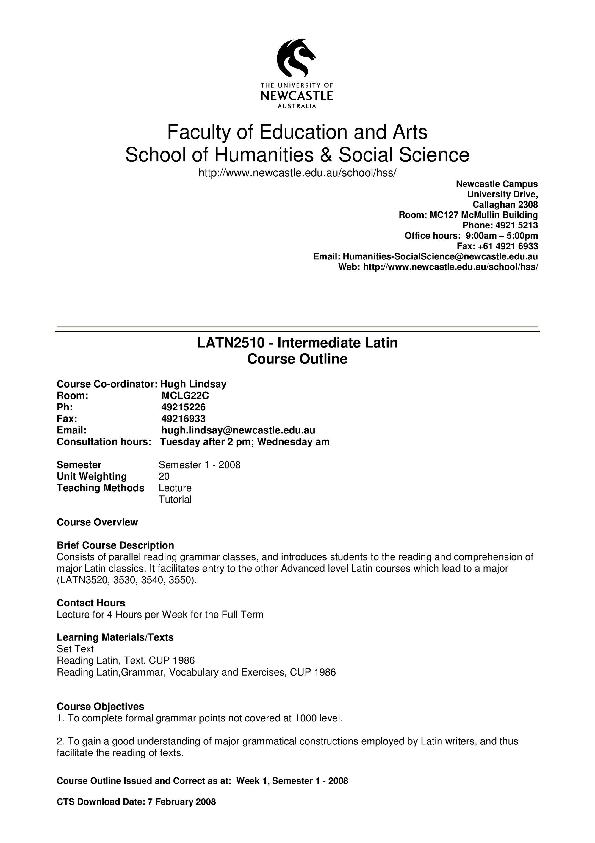 School of Humanities and Social Science, LATN2510 Course Outline, Semester 1, 2008 (2008). Living Histories, accessed 20/03/2026, https://livinghistories.newcastle.edu.au/nodes/view/58391