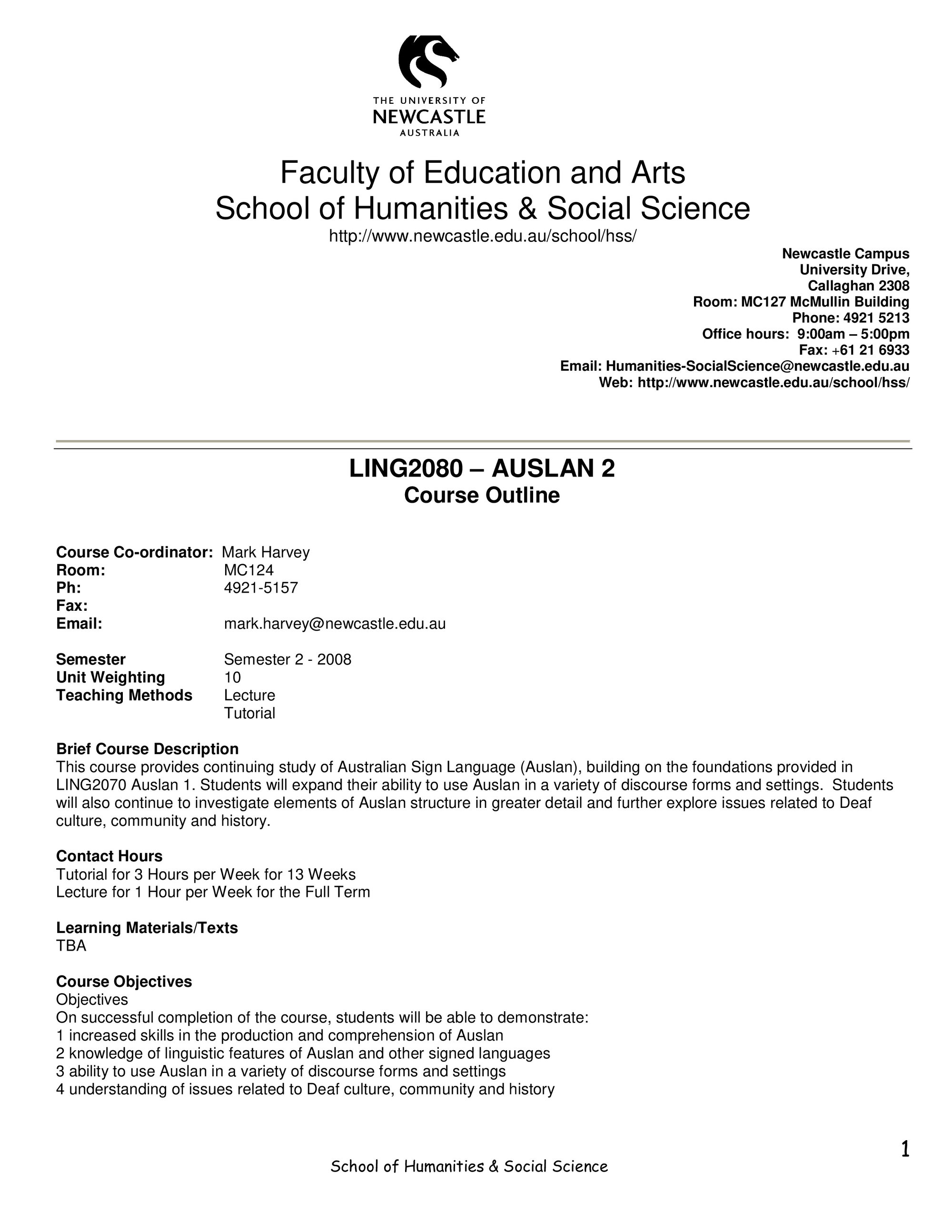 School of Humanities and Social Science, LING2080 Course Outline, Semester 2, 2008 (2008). Living Histories, accessed 13/03/2026, https://livinghistories.newcastle.edu.au/nodes/view/58450