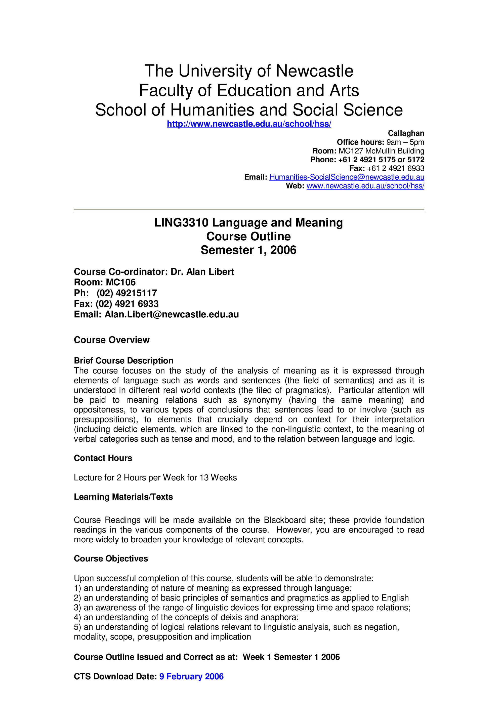 School of Humanities and Social Science, LING3310 Course Outline, Semester 1, 2006 (2006). Living Histories, accessed 20/03/2026, https://livinghistories.newcastle.edu.au/nodes/view/58484