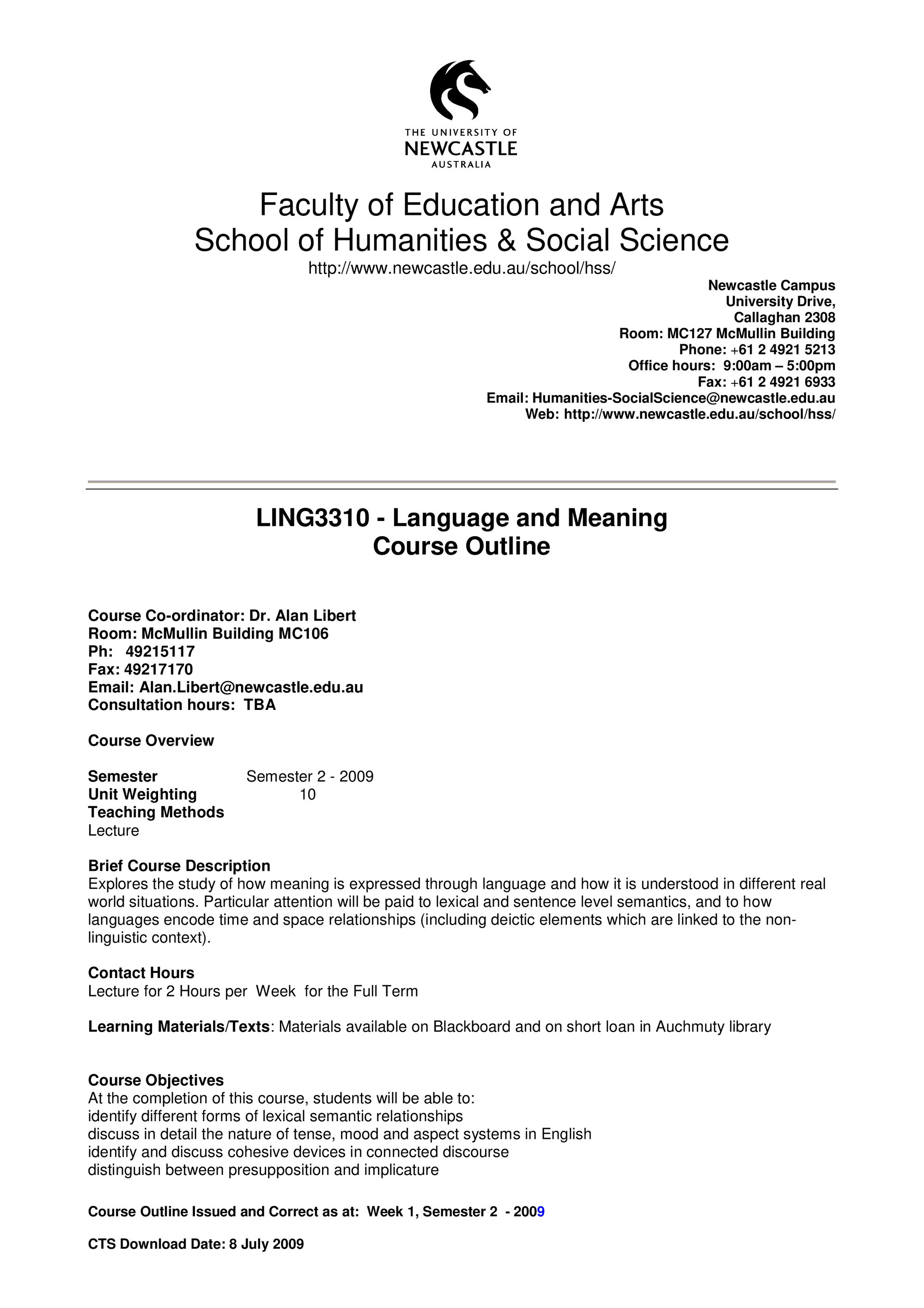 School of Humanities and Social Science, LING3310 Course Outline, Semester 2, 2009 (2009). Living Histories, accessed 08/03/2026, https://livinghistories.newcastle.edu.au/nodes/view/58487