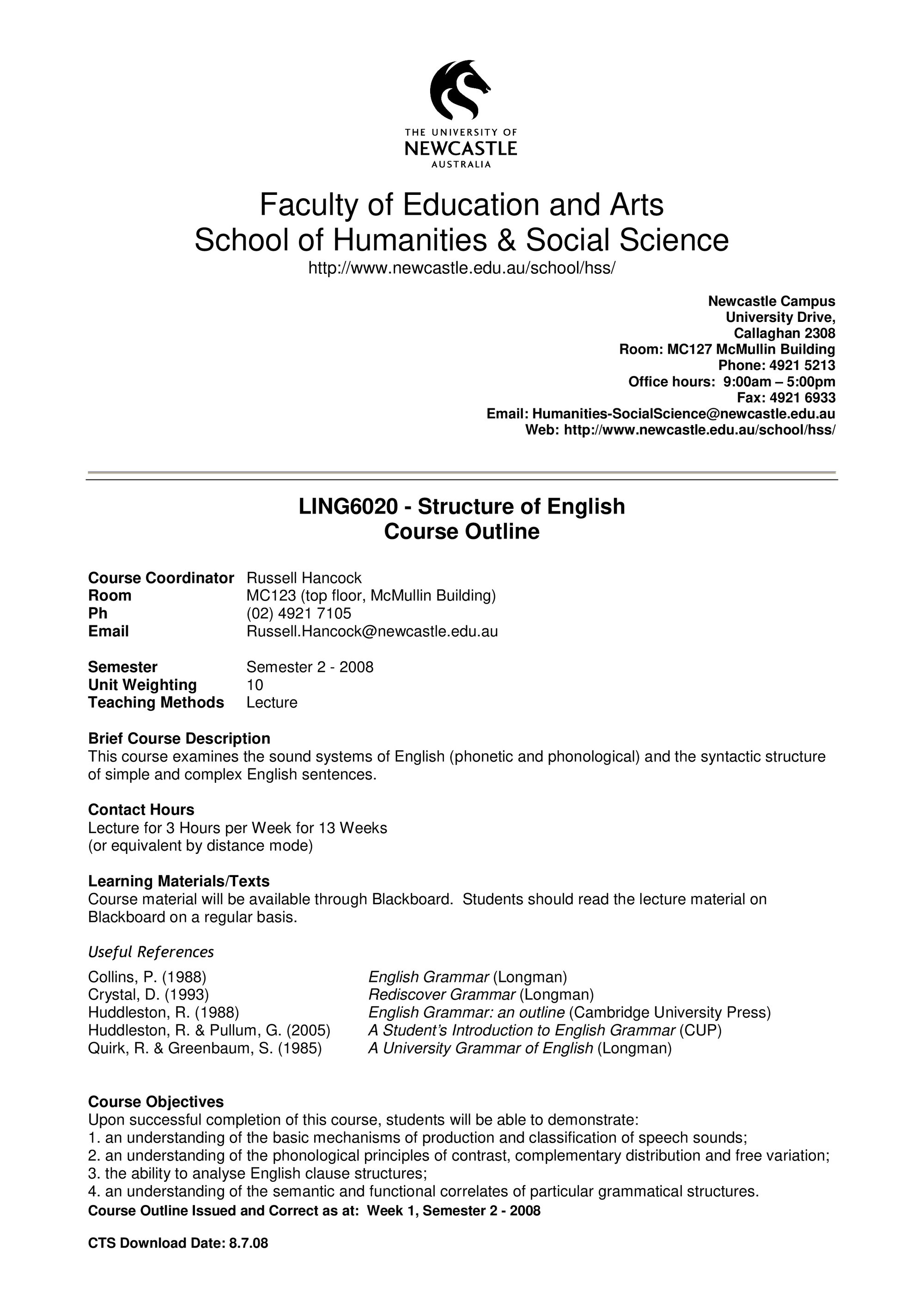 School of Humanities and Social Science, LING6020 Course Outline, Semester 2, 2008 (2008). Living Histories, accessed 19/03/2026, https://livinghistories.newcastle.edu.au/nodes/view/58498
