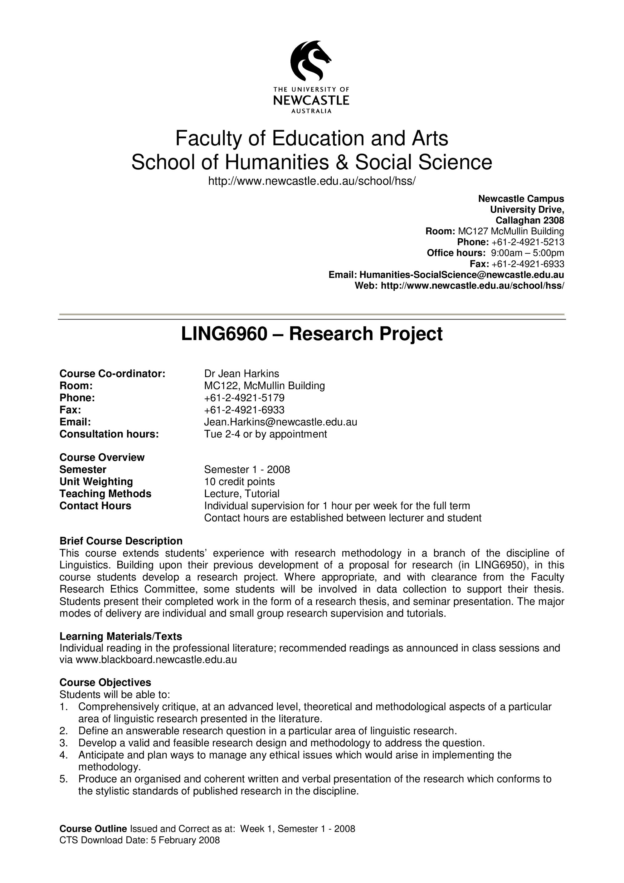 School of Humanities and Social Science, LING6960 Course Outline, Semester 1, 2008 (2008). Living Histories, accessed 20/03/2026, https://livinghistories.newcastle.edu.au/nodes/view/58547