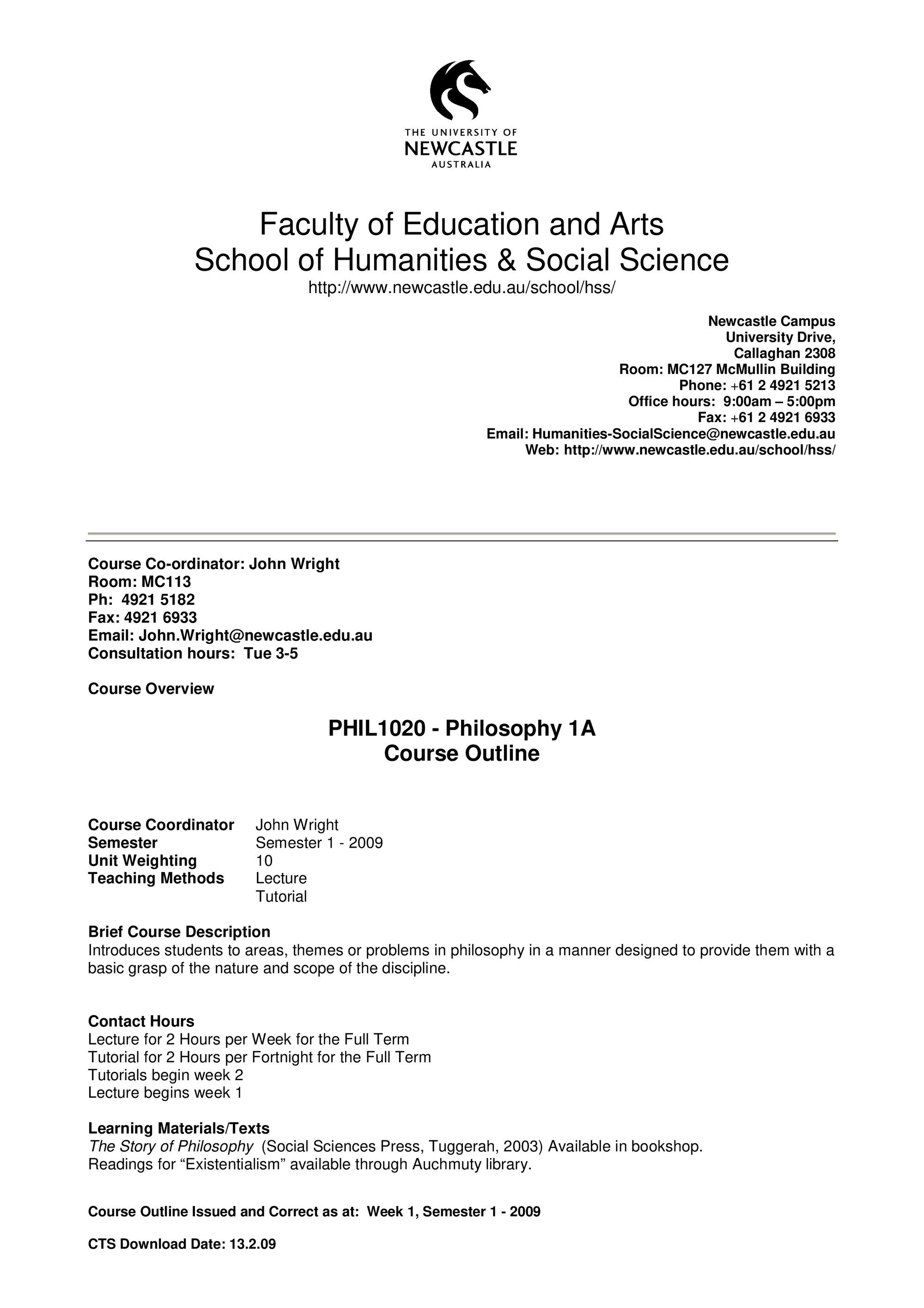 School of Humanities and Social Science, PHIL1020 Course Outline, Semester 1, 2009 (2009). Living Histories, accessed 17/04/2026, https://livinghistories.newcastle.edu.au/nodes/view/58553