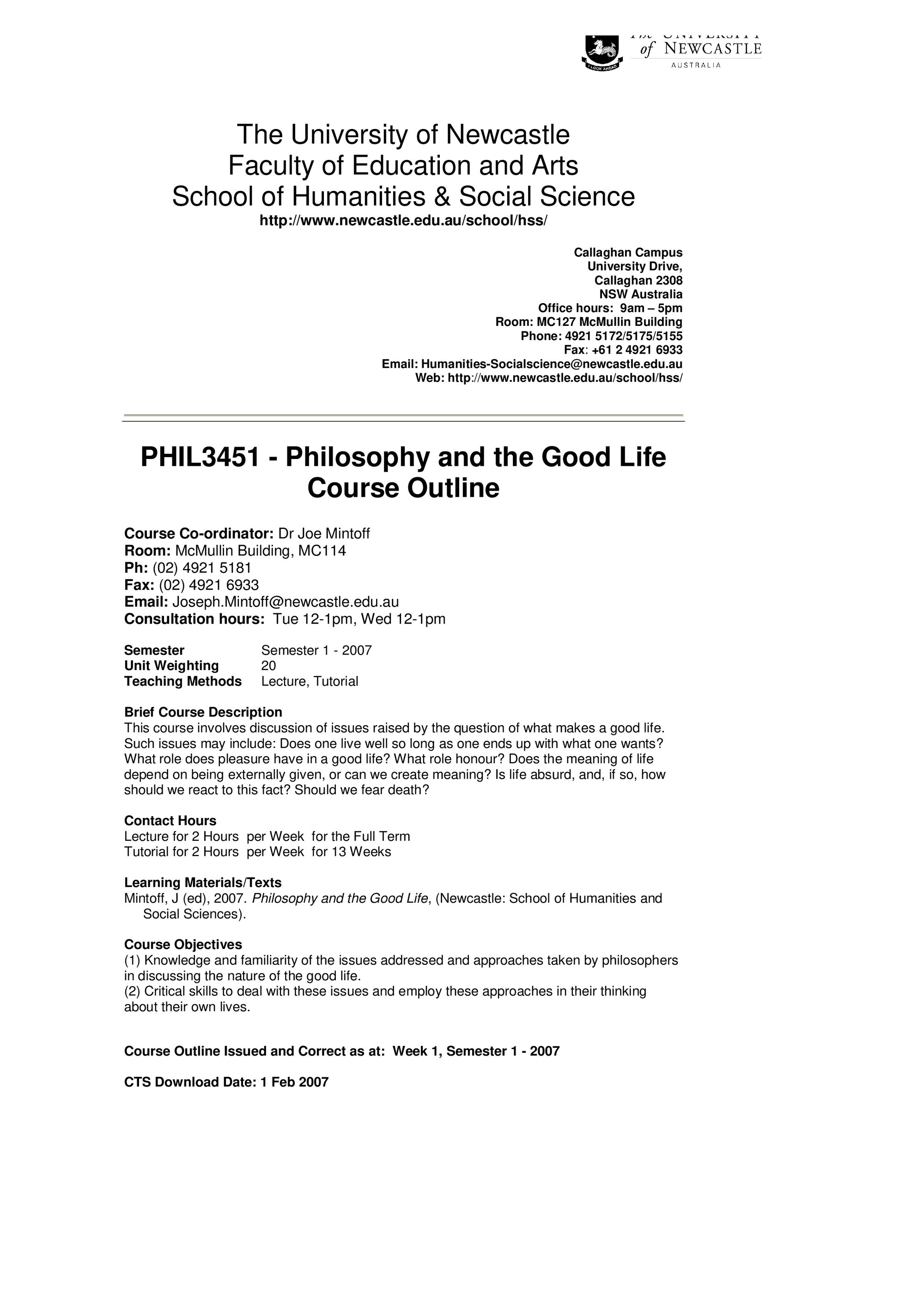 School of Humanities and Social Science, PHIL3451 Course Outline, Semester 1, 2007 (2007). Living Histories, accessed 12/03/2026, https://livinghistories.newcastle.edu.au/nodes/view/58592