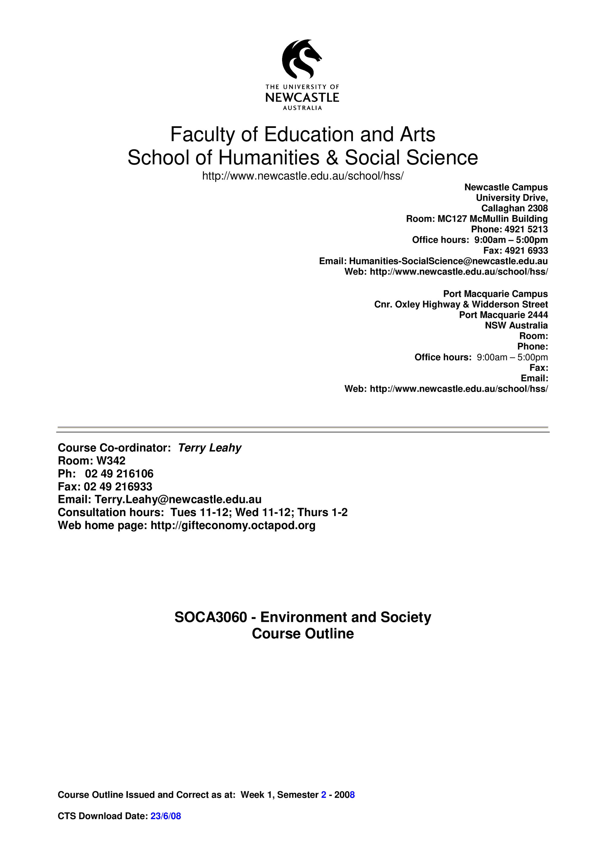 School of Humanities and Social Science, SOCA3060 Course Outline, Semester 2, 2008 (2008). Living Histories, accessed 11/03/2026, https://livinghistories.newcastle.edu.au/nodes/view/58661
