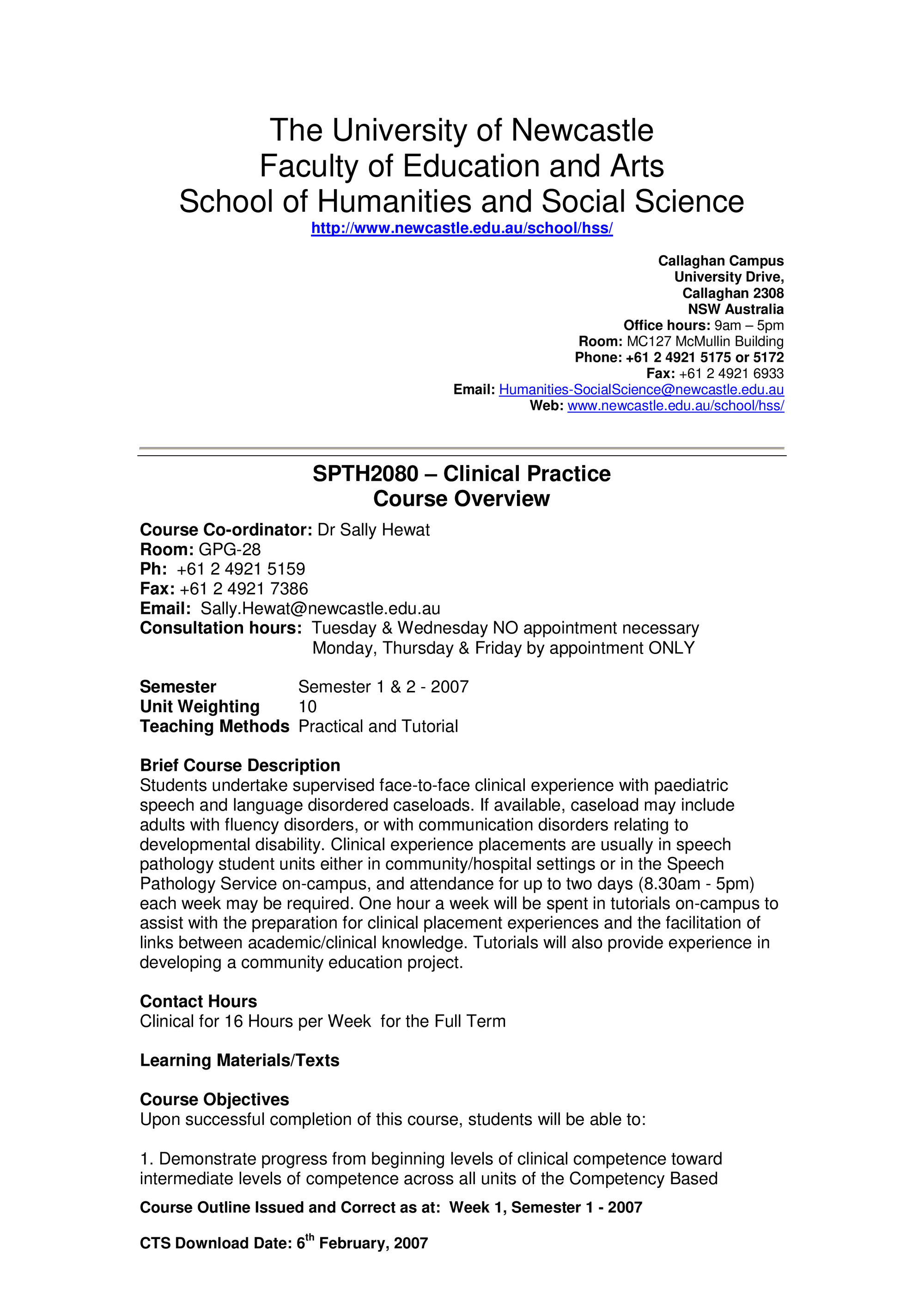 School of Humanities and Social Science, SPTH2080 Course Outline, Semester 1, 2007 (2007). Living Histories, accessed 13/03/2026, https://livinghistories.newcastle.edu.au/nodes/view/58779