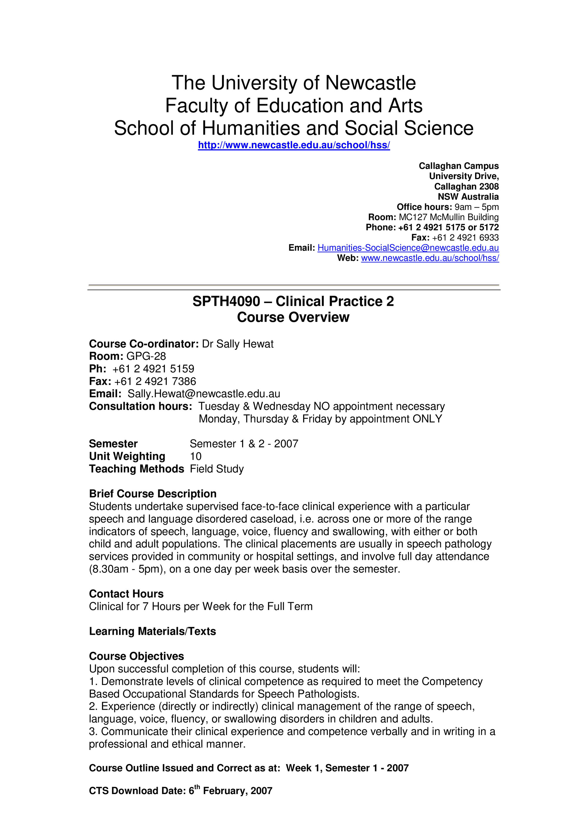 School of Humanities and Social Science, SPTH4090 Course Outline, Semester 1, 2007 (2007). Living Histories, accessed 12/02/2026, https://livinghistories.newcastle.edu.au/nodes/view/58838