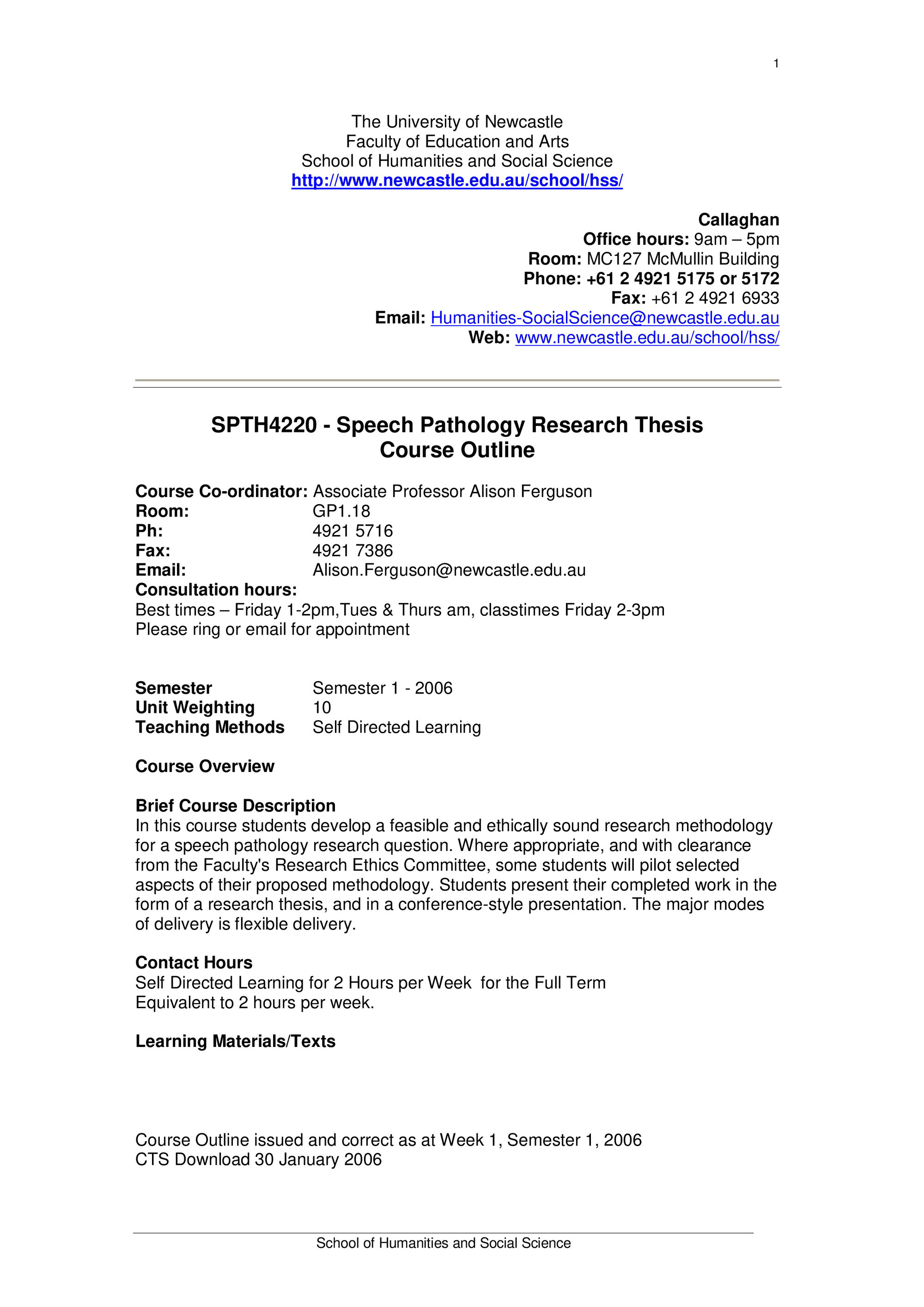 School of Humanities and Social Science, SPTH4220 Course Outline, Semester 1, 2006 (2006). Living Histories, accessed 13/03/2026, https://livinghistories.newcastle.edu.au/nodes/view/58857
