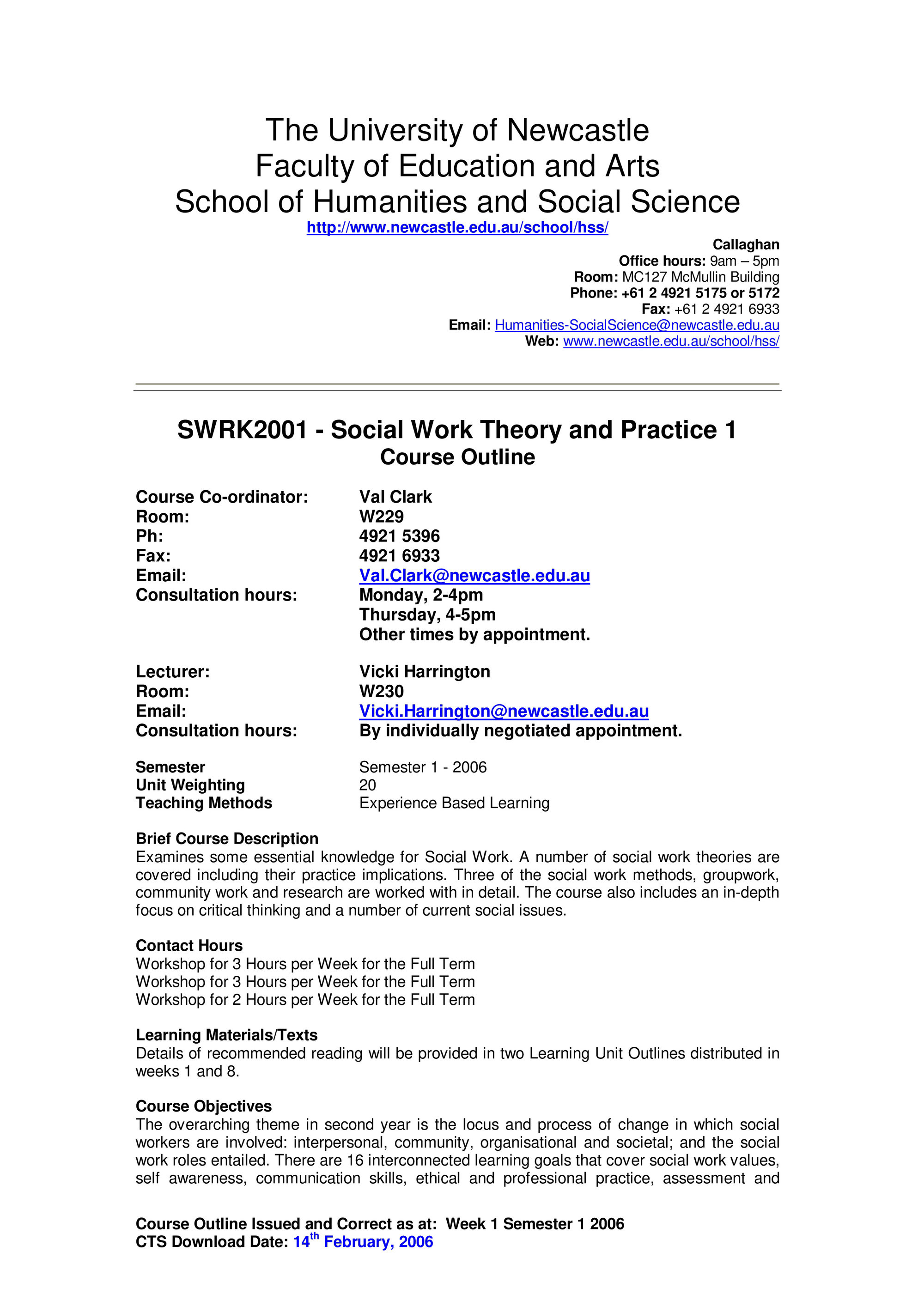 School of Humanities and Social Science, SWRK2001 Course Outline, Semester 1, 2006 (2006). Living Histories, accessed 18/03/2026, https://livinghistories.newcastle.edu.au/nodes/view/58872
