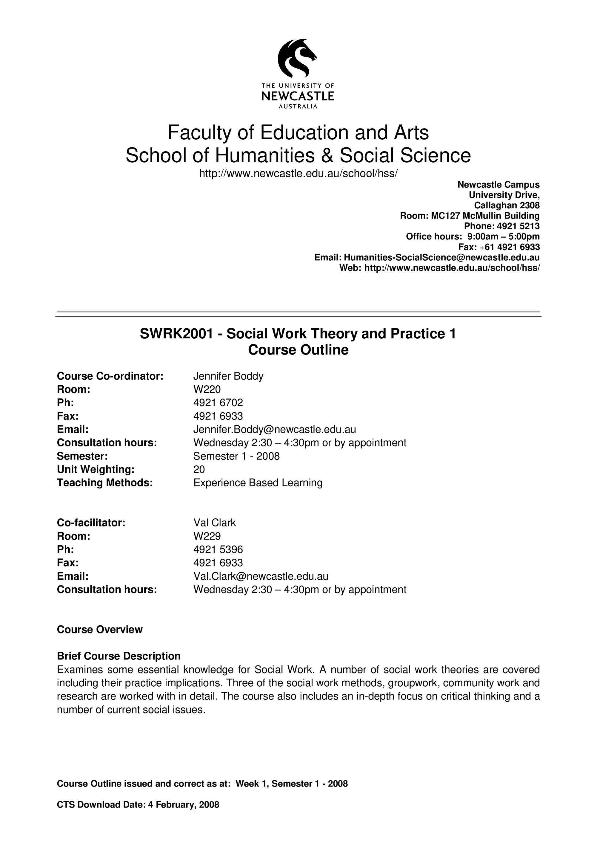 School of Humanities and Social Science, SWRK2001 Course Outline, Semester 1, 2008 (2008). Living Histories, accessed 16/01/2026, https://livinghistories.newcastle.edu.au/nodes/view/58873