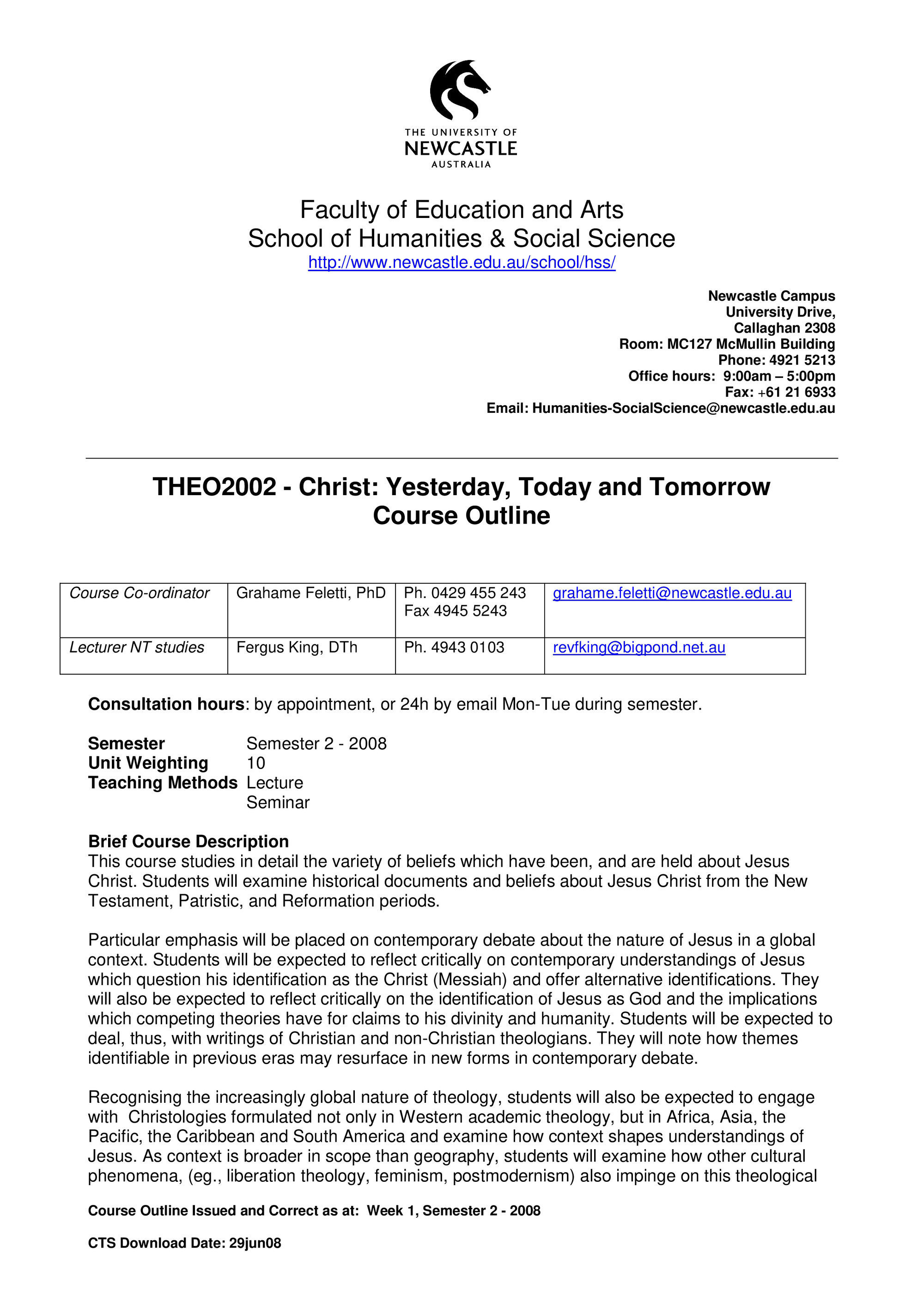School of Humanities and Social Science, THEO2002 Course Outline, Semester 2, 2008 (2008). Living Histories, accessed 16/02/2026, https://livinghistories.newcastle.edu.au/nodes/view/58934