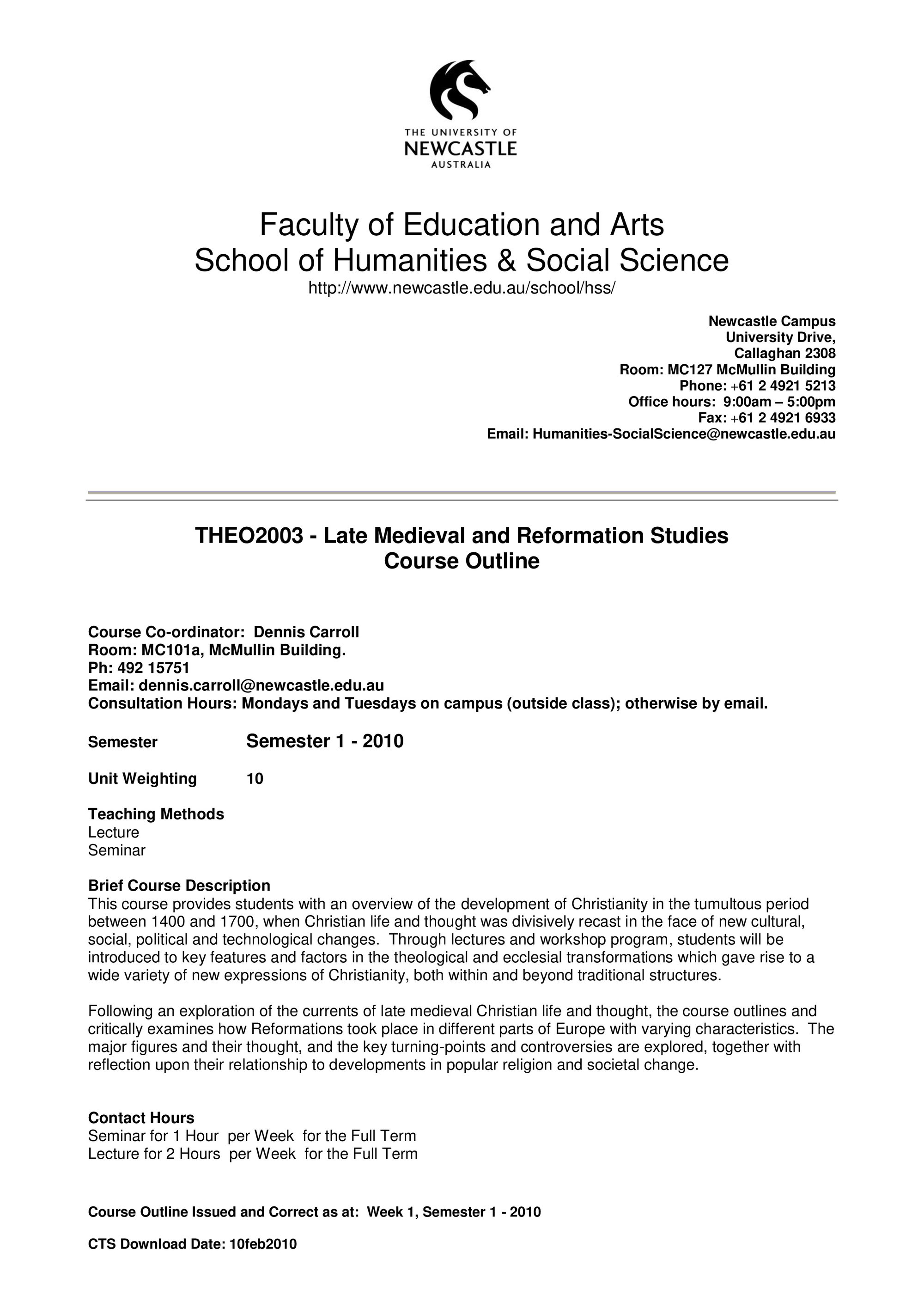 School of Humanities and Social Science, THEO2003 Course Outline, Semester 1, 2010 (2010). Living Histories, accessed 19/03/2026, https://livinghistories.newcastle.edu.au/nodes/view/58938
