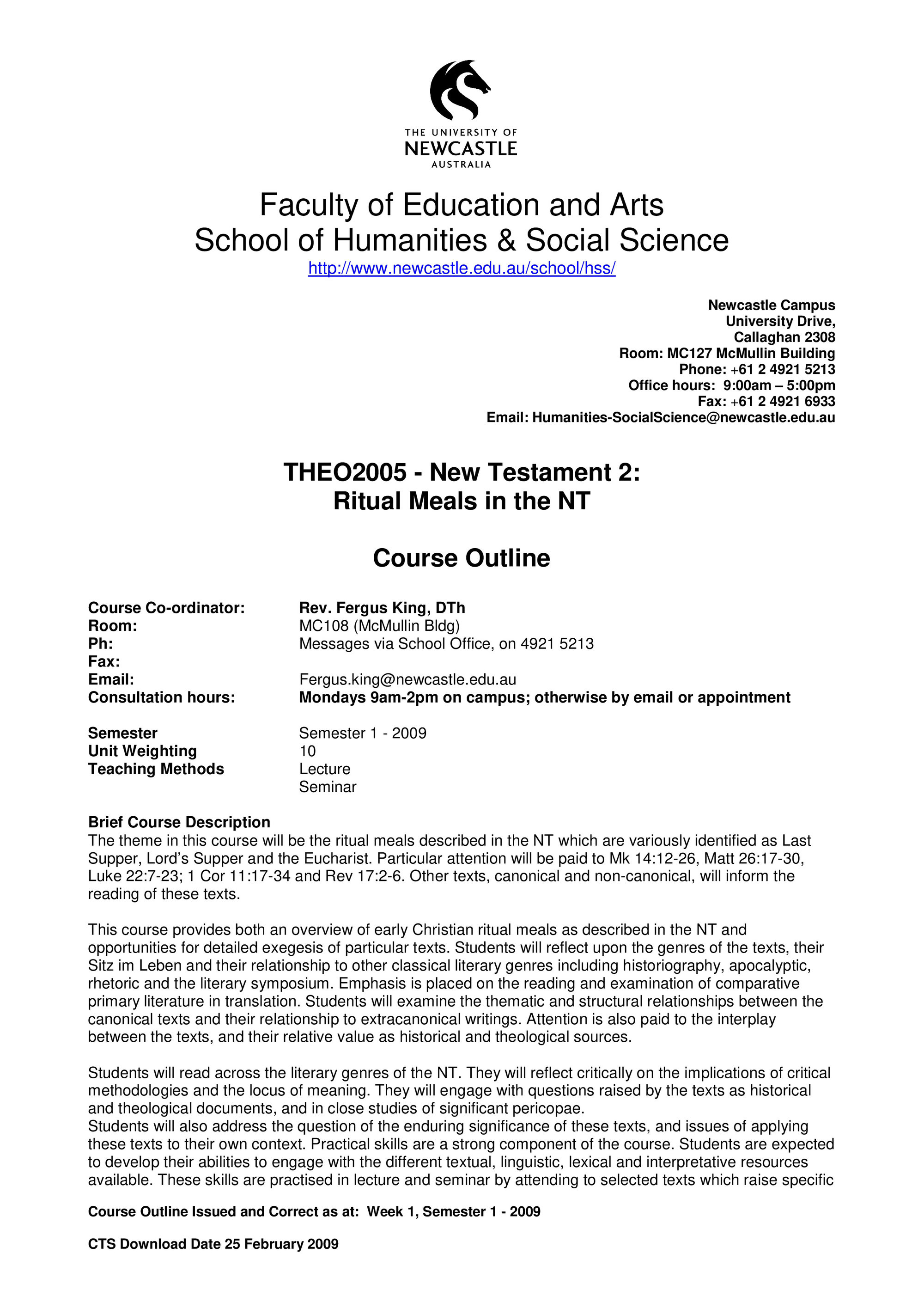 School of Humanities and Social Science, THEO2005 Course Outline, Semester 1, 2009 (2009). Living Histories, accessed 18/03/2026, https://livinghistories.newcastle.edu.au/nodes/view/58943