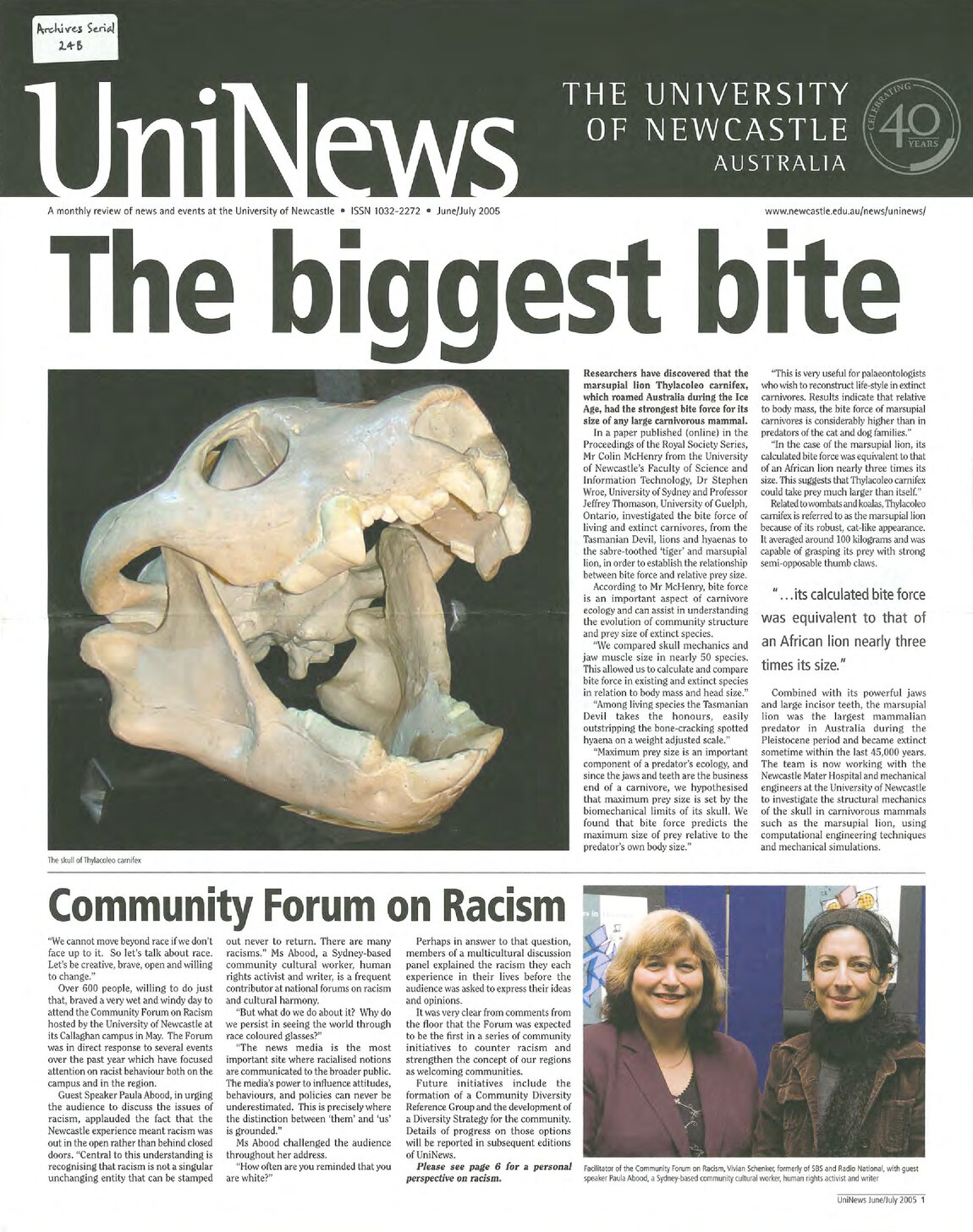 University of Newcastle (N.S.W.), UniNews (University of Newcastle, N.S.W.), June/July, 2005, [Archives Serial 24]. Living Histories, accessed 04/04/2026, https://livinghistories.newcastle.edu.au/nodes/view/59265