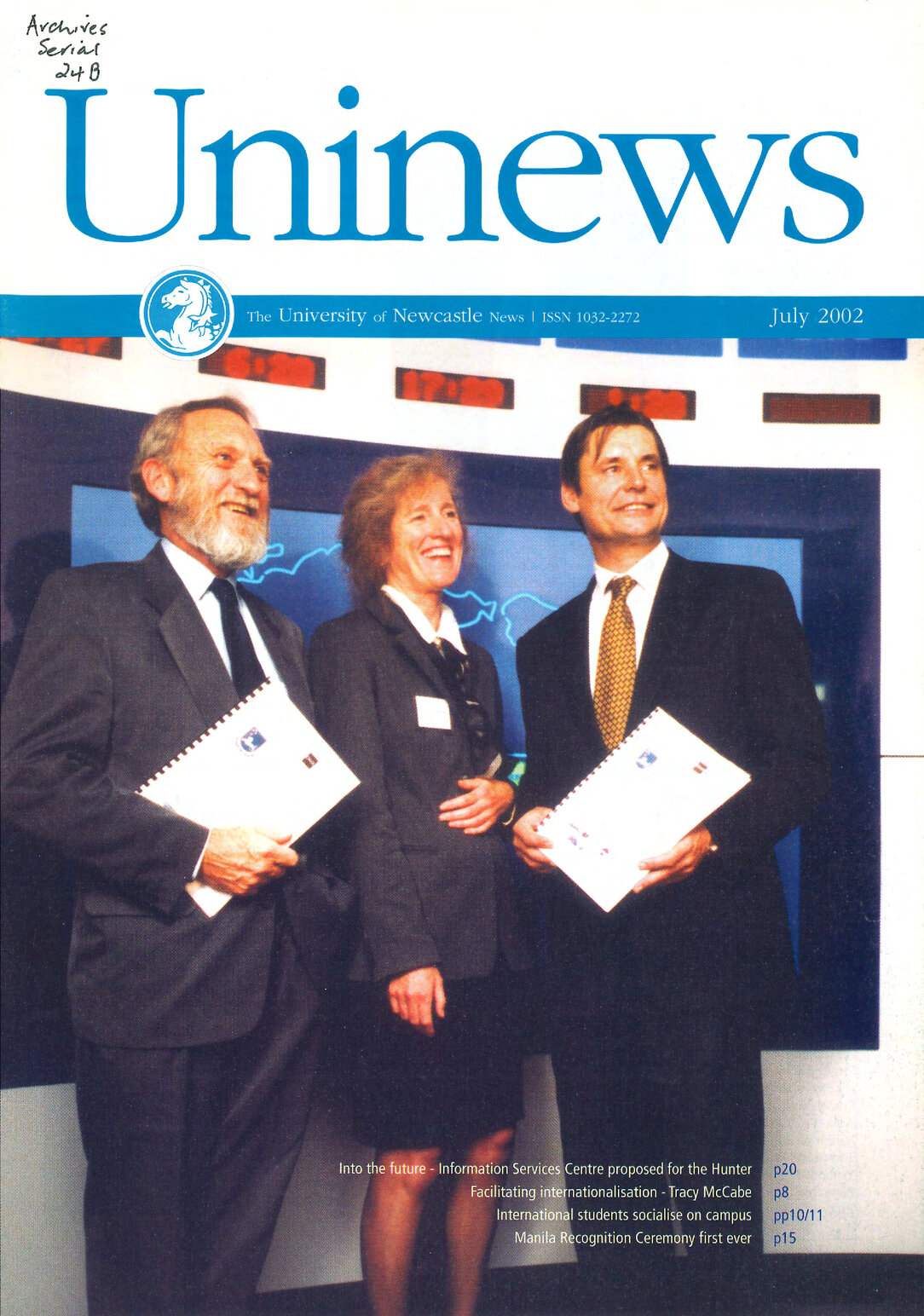 University of Newcastle (N.S.W.), UniNews (University of Newcastle, N.S.W.), July, 2002, [Archives Serial 24]. Living Histories, accessed 04/04/2026, https://livinghistories.newcastle.edu.au/nodes/view/59282