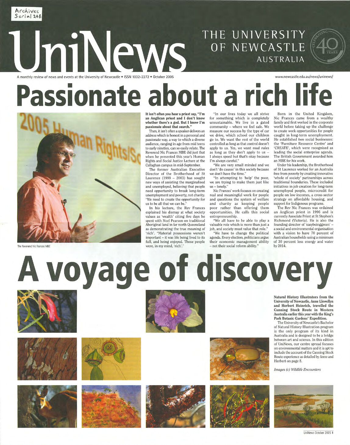 University of Newcastle (N.S.W.), UniNews (University of Newcastle, N.S.W.), October, 2005, [Archives Serial 24]. Living Histories, accessed 04/04/2026, https://livinghistories.newcastle.edu.au/nodes/view/59289