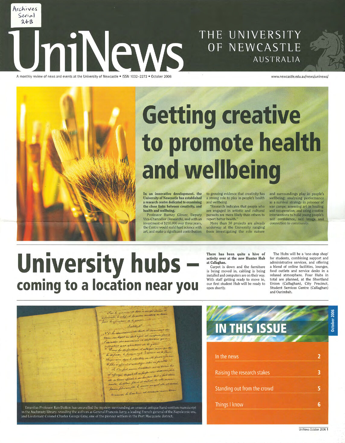University of Newcastle (N.S.W.), UniNews (University of Newcastle, N.S.W.), October, 2006, [Archives Serial 24]. Living Histories, accessed 04/04/2026, https://livinghistories.newcastle.edu.au/nodes/view/59290