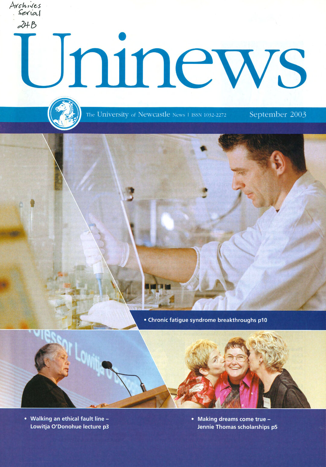 University of Newcastle (N.S.W.), UniNews (University of Newcastle, N.S.W.), September, 2003, [Archives Serial 24]. Living Histories, accessed 03/04/2026, https://livinghistories.newcastle.edu.au/nodes/view/59297