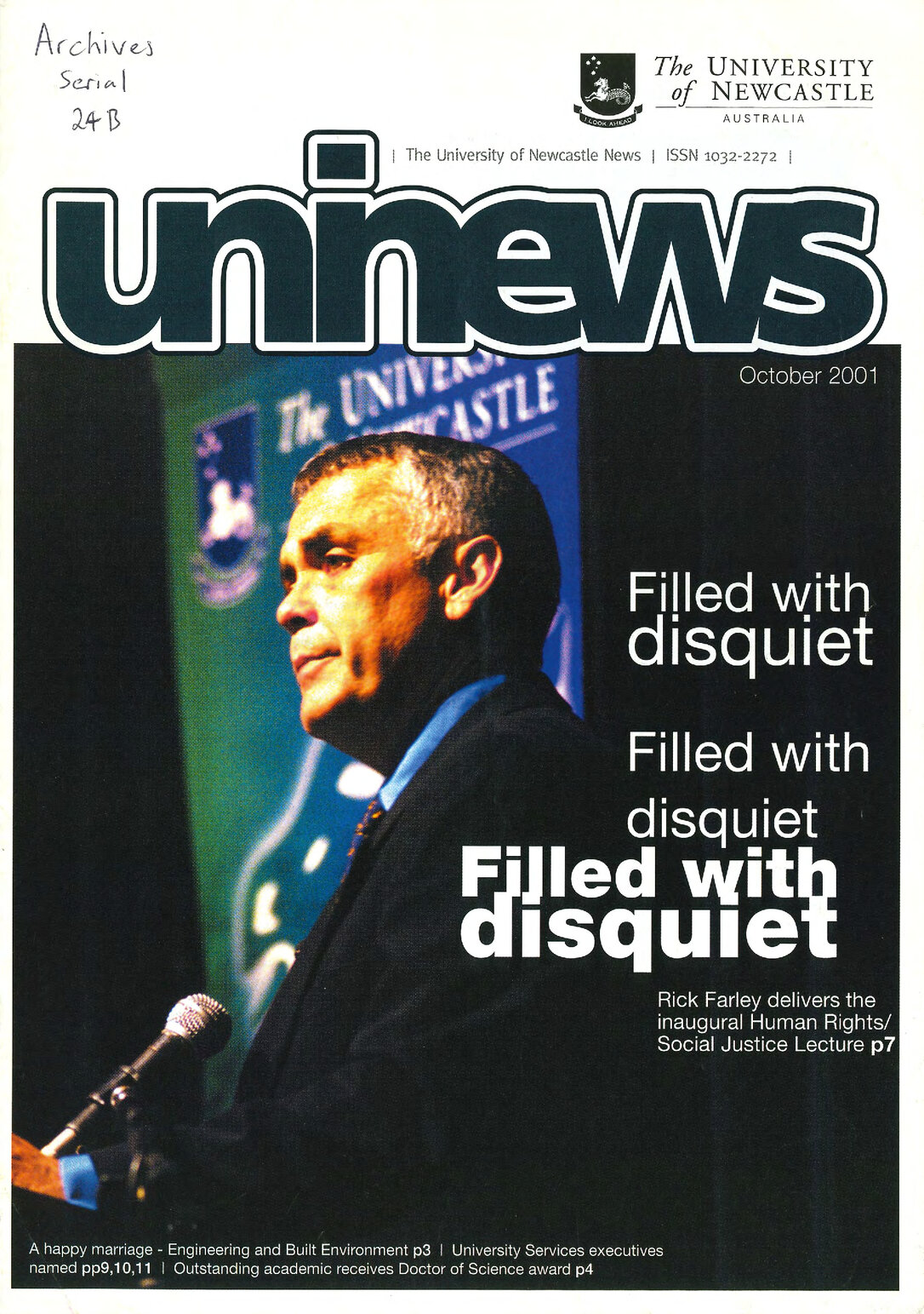 University of Newcastle (N.S.W.), UniNews (University of Newcastle, N.S.W.), October, 2001, [Archives Serial 24]. Living Histories, accessed 04/04/2026, https://livinghistories.newcastle.edu.au/nodes/view/59300