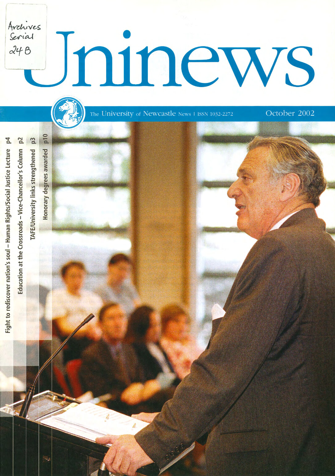 University of Newcastle (N.S.W.), UniNews (University of Newcastle, N.S.W.), October, 2002, [Archives Serial 24]. Living Histories, accessed 04/04/2026, https://livinghistories.newcastle.edu.au/nodes/view/59301