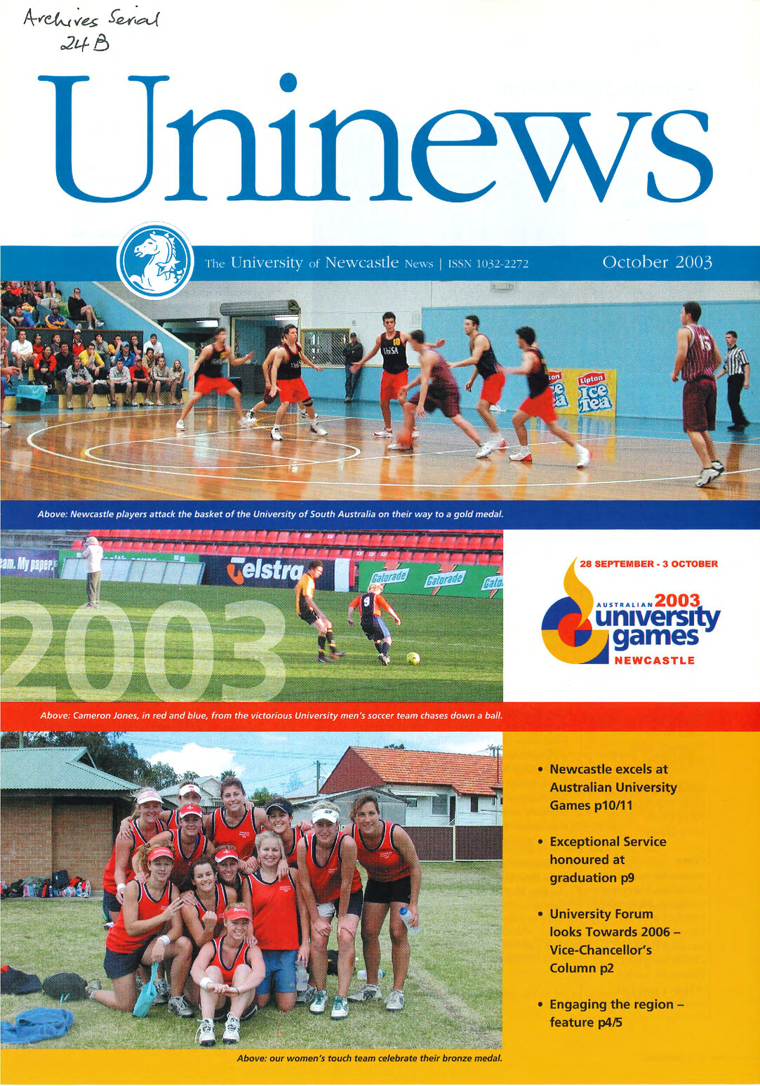 University of Newcastle (N.S.W.), UniNews (University of Newcastle, N.S.W.), October, 2003, [Archives Serial 24]. Living Histories, accessed 03/04/2026, https://livinghistories.newcastle.edu.au/nodes/view/59302