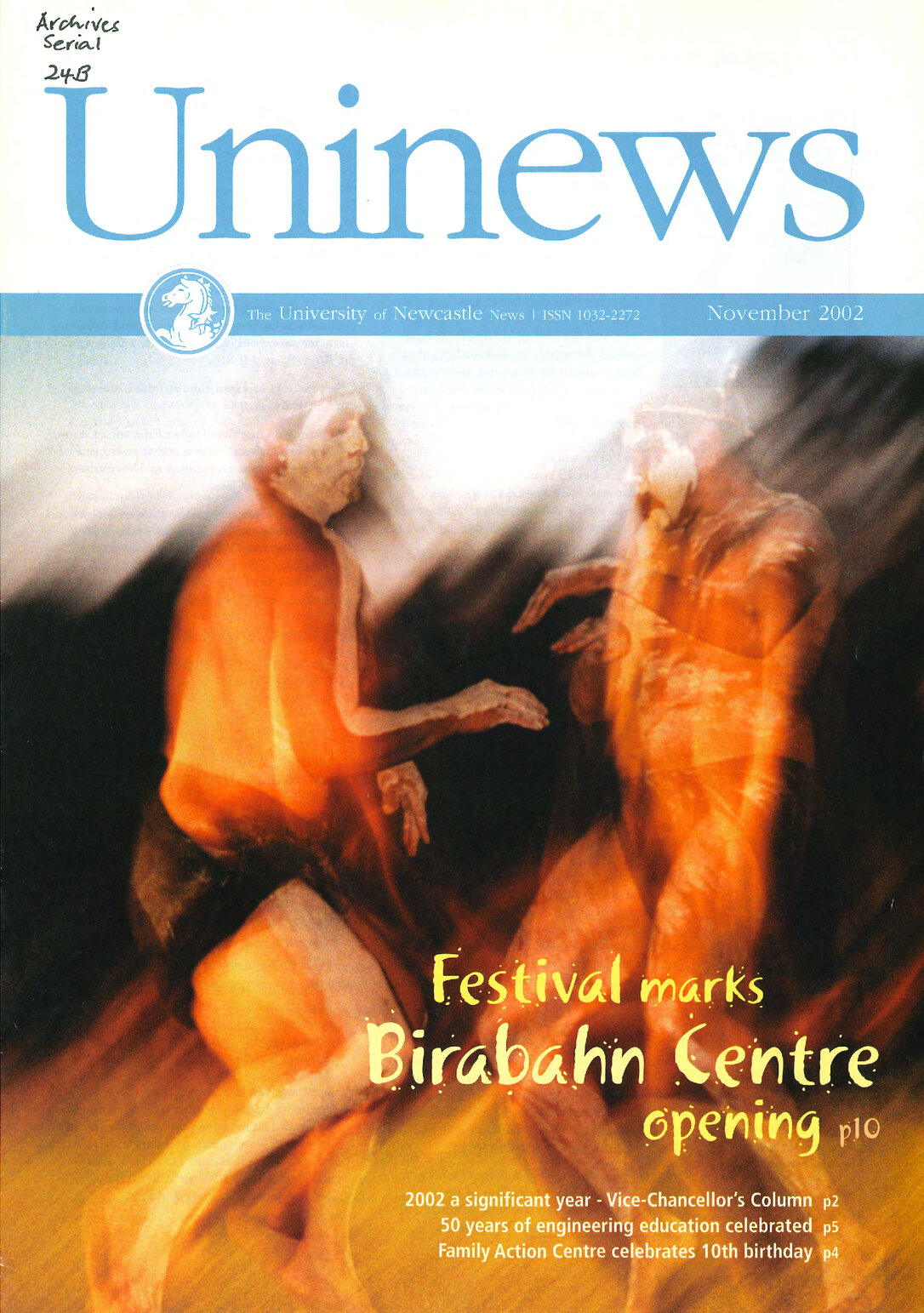 University of Newcastle (N.S.W.), UniNews (University of Newcastle, N.S.W.), November, 2002, [Archives Serial 24]. Living Histories, accessed 04/04/2026, https://livinghistories.newcastle.edu.au/nodes/view/59304