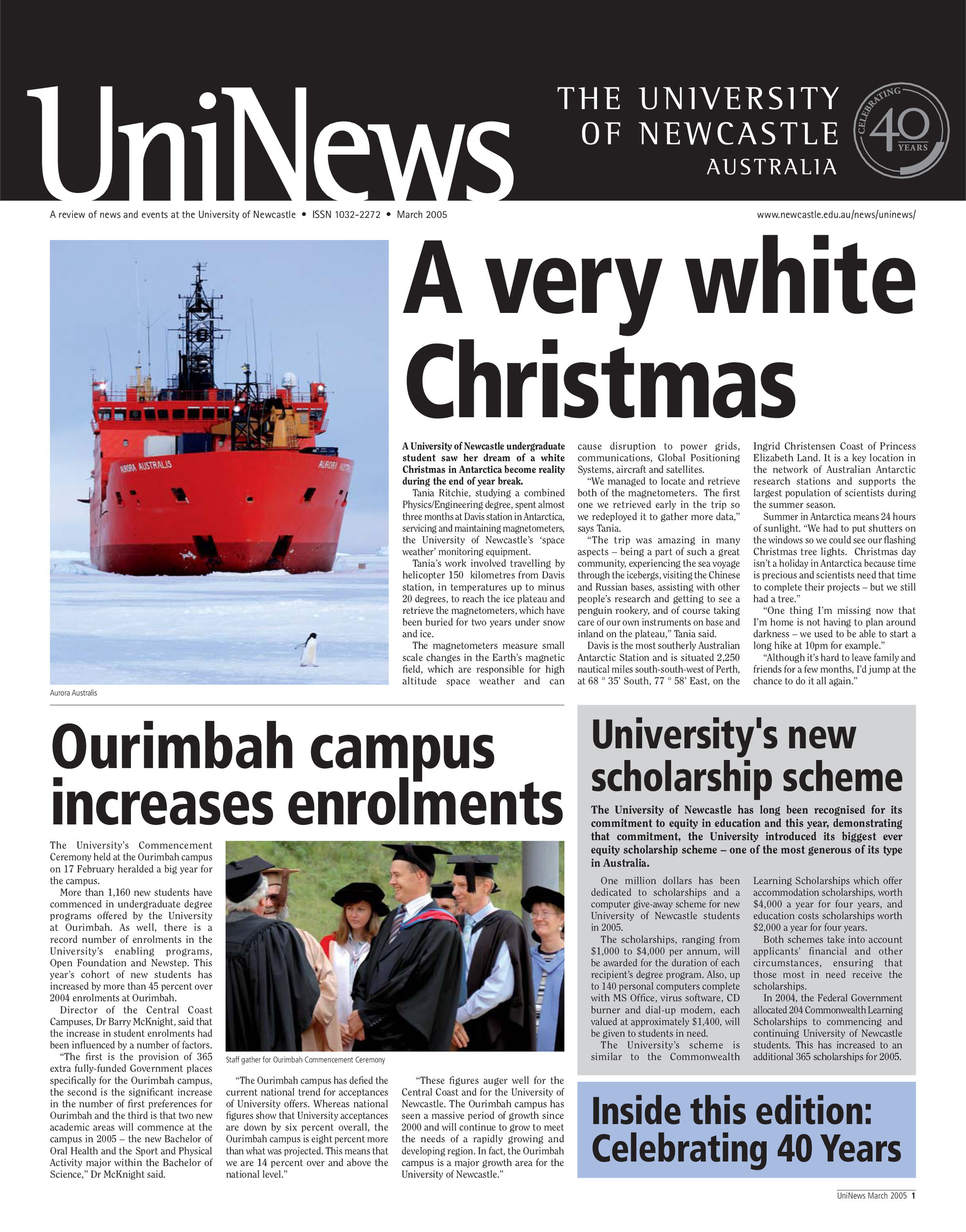 University of Newcastle (N.S.W.), UniNews (University of Newcastle, N.S.W.), March 2005, [Archives Serial 24]. Living Histories, accessed 04/04/2026, https://livinghistories.newcastle.edu.au/nodes/view/59332