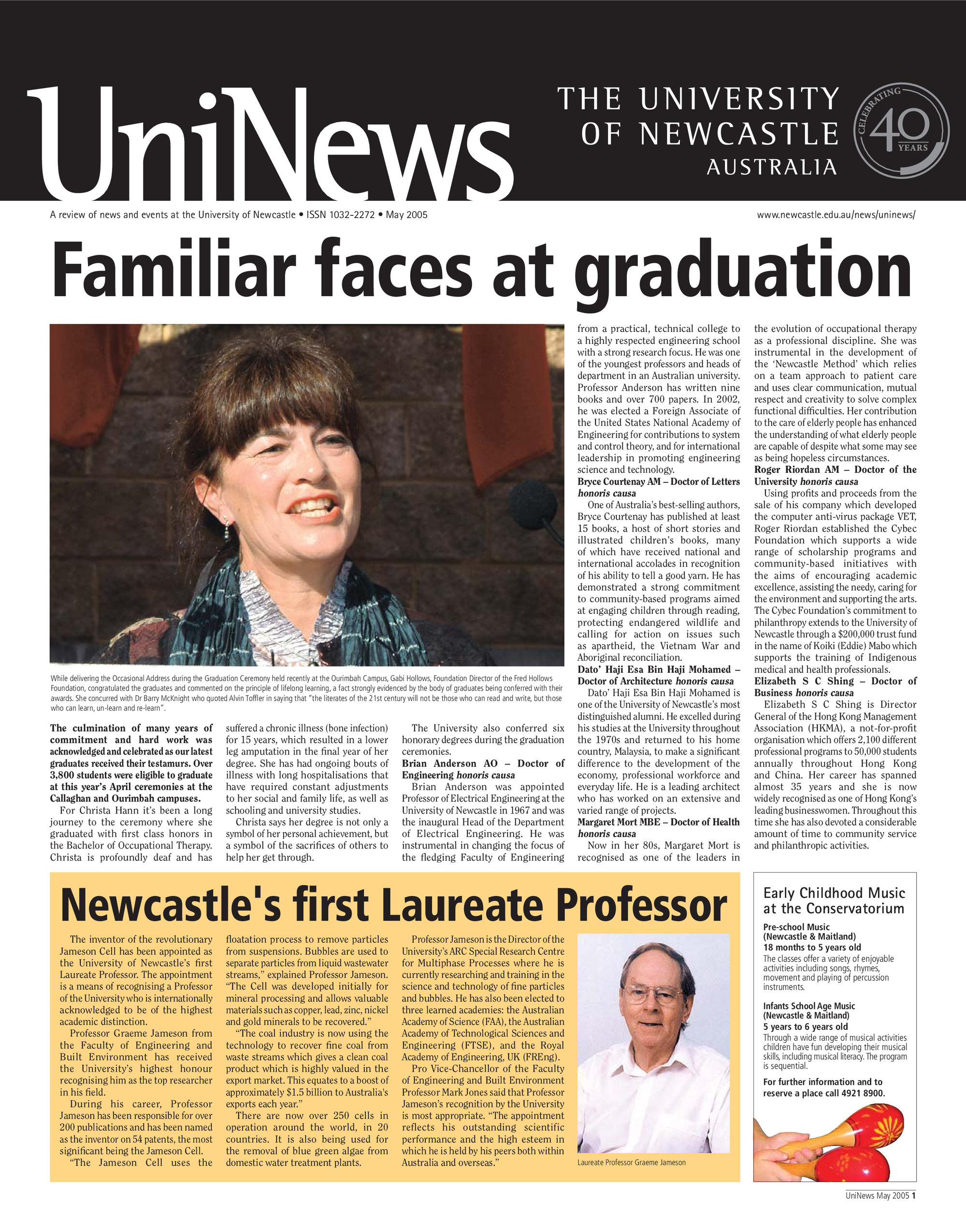 University of Newcastle (N.S.W.), UniNews (University of Newcastle, N.S.W.), May 2005, [Archives Serial 24]. Living Histories, accessed 04/04/2026, https://livinghistories.newcastle.edu.au/nodes/view/59334