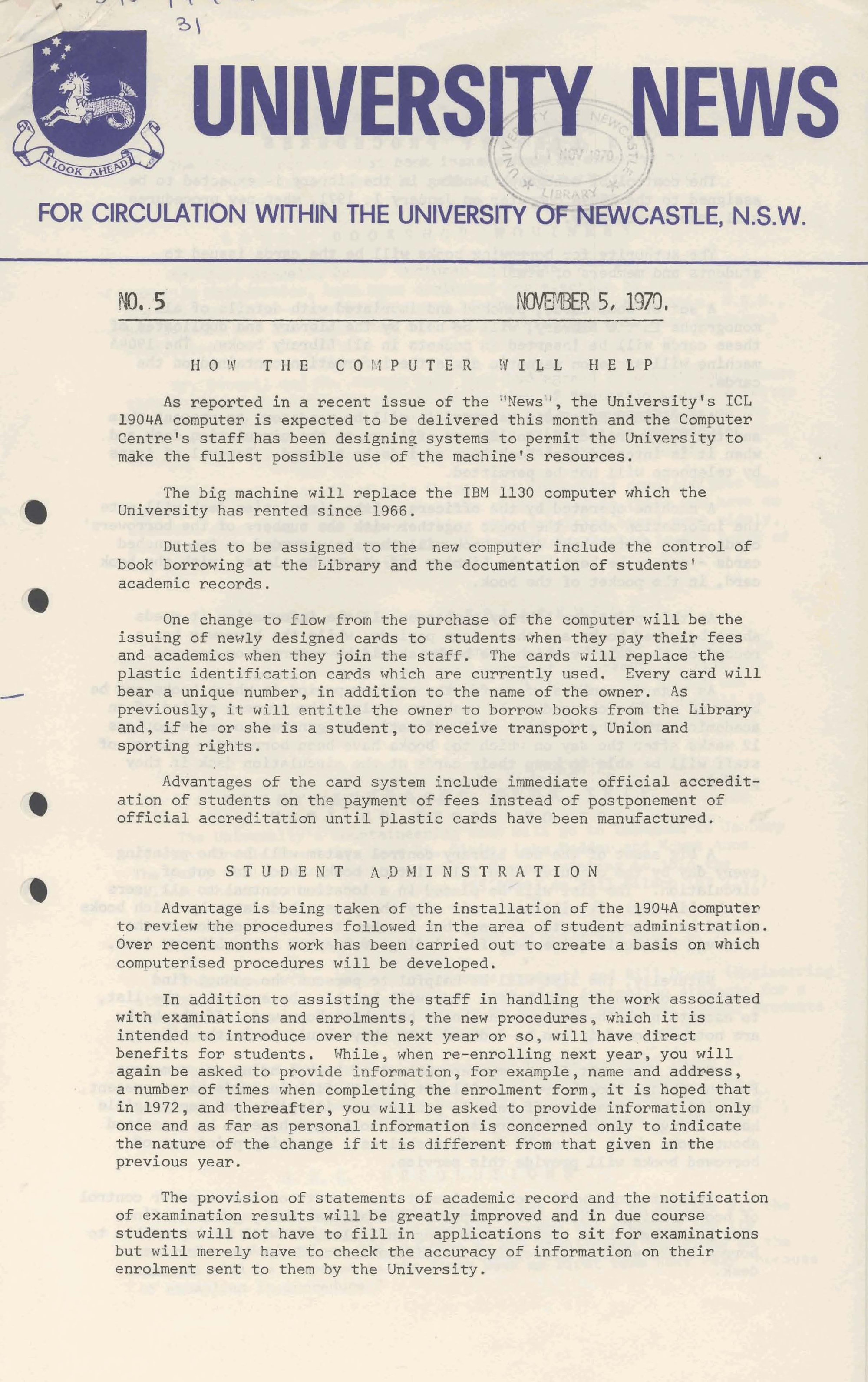 University News, The University of Newcastle, No. 5, 5 November 1970